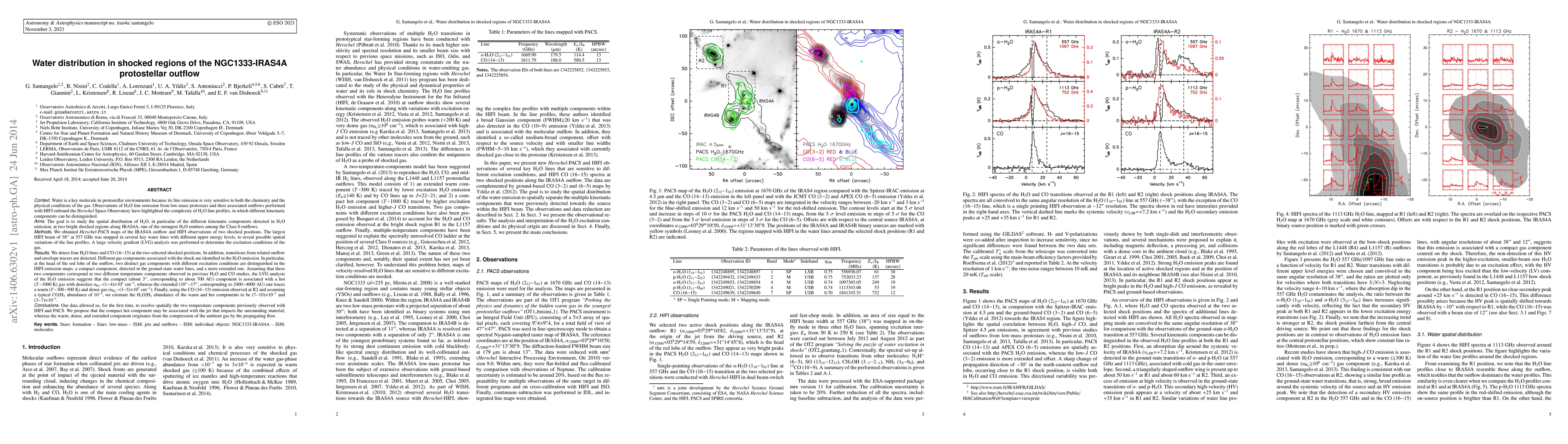 Researchers studied water distribution in two bright regions of an outflow from a protostar, finding two distinct gas components with different temperatures and densities; one associated with a hot jet impact and the other with compressed ambient gas.