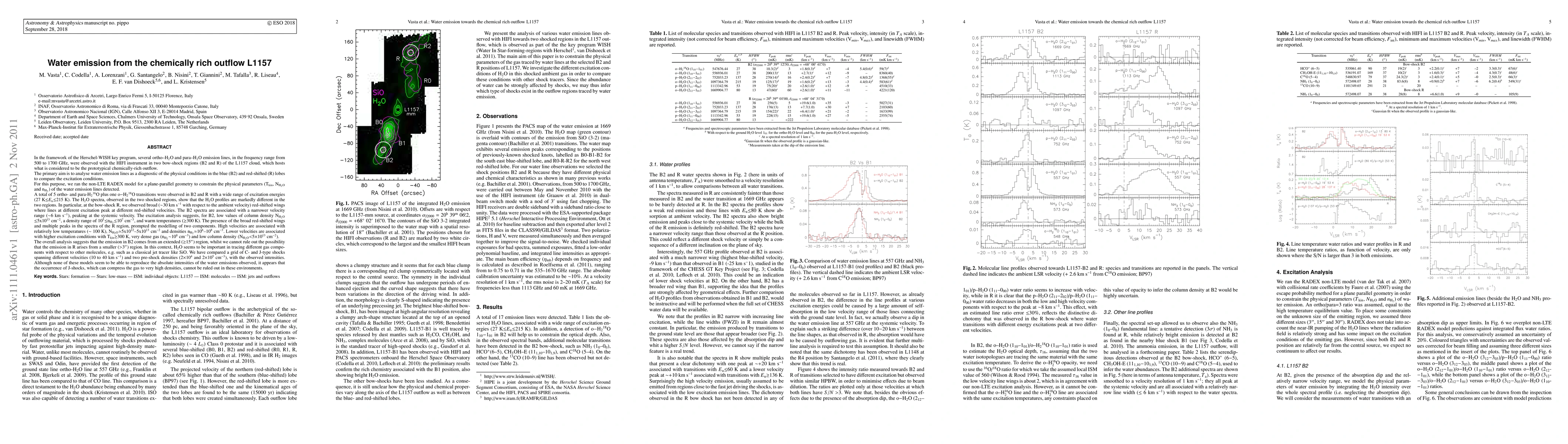 In the framework of the Herschel-WISH key program, several ortho-H2O and para-H2O emission lines, in the frequency range from 500 to 1700 GHz, were observed with the HIFI instrument in two bow-shock regions (B2 and R) of the L1157 cloud. The primary aim is to analyse water emission lines as a diagnostic of the physical conditions in the blue (B2) and red-shifted (R) lobes to compare the excitation conditions. A total of 5 ortho- and para-H216O plus one o-H218O transitions were observed in B2 and R with a wide range of excitation energies (27 K<=Eu<=215 K). The H2O spectra, observed in the two shocked regions, show that the H2O profiles are markedly different in the two regions. In particular, at the bow-shock R, we observed broad (~30 km s-1 with respect to the ambient velocity) red-shifted wings where lines at different excitation peak at different red-shifted velocities. The B2 spectra are associated with a narrower velocity range (~6 km s-1), peaking at the systemic velocity. The excitation analysis suggests, for B2, low values of column density NH2O <=5{\times}1013 cm-2, a density range of 105 <=nH2 <=107 cm-3, and warm temperatures (>=300 K). The presence of the broad red-shifted wings and multiple peaks in the spectra of the R region, prompted the modelling of two components. High velocities are associated with relatively low temperatures (~100K),NH2O{\simeq}5{\times}1012-5{\times}1013 cm-2 and densities nH2{\simeq}106-108 cm-3.Lower velocities are associated with higher excitation conditions with Tkin>=300 K, very dense gas (nH2 ~108 cm-3) and low column density (NH2O<5{\times}1013 cm-2).