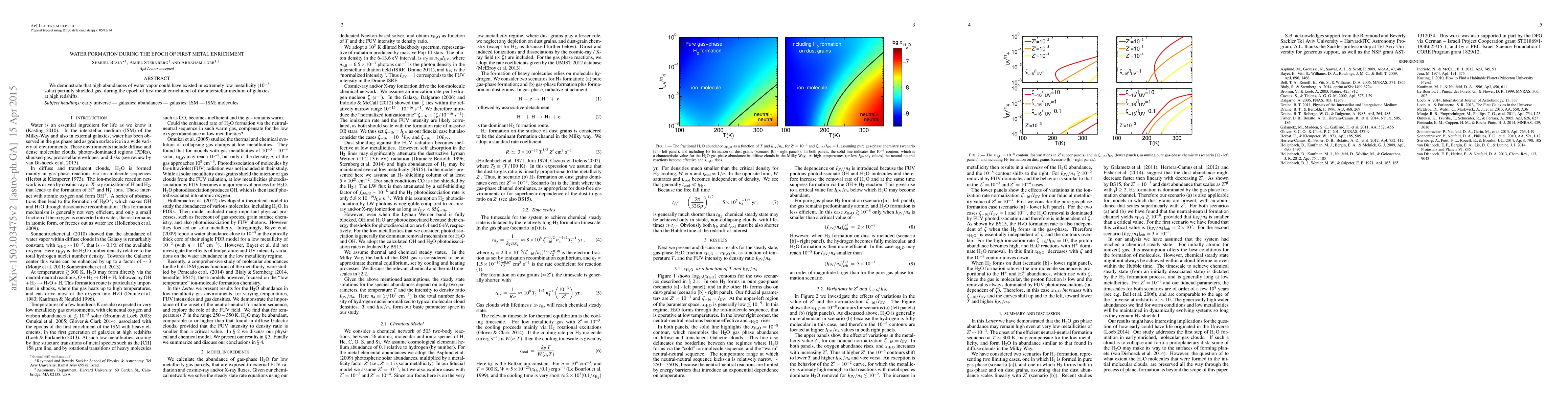 Summary: This study reveals that high concentrations of water vapor may have formed in low metallicity environments, partially shielded from direct stellar radiation, during the early stages of metal enrichment in the high-redshift interstellar medium of galaxies.