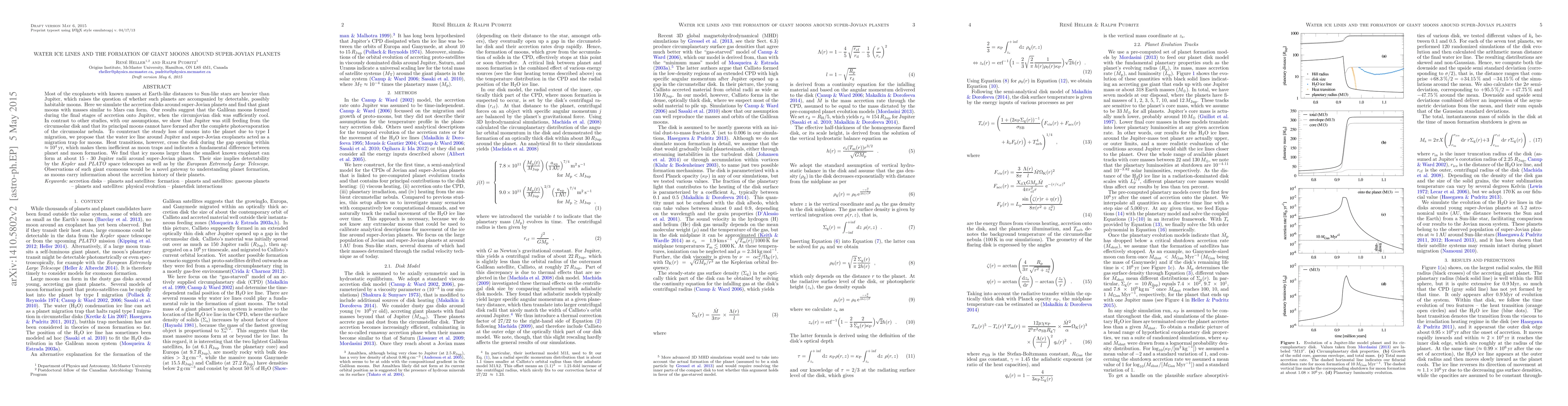 Most of the exoplanets with known masses at Earth-like distances to Sun-like stars are heavier than Jupiter, which raises the question of whether such planets are accompanied by detectable, possibly habitable moons. Here we simulate the accretion disks around super-Jovian planets and find that giant moons with masses similar to Mars can form. Our results suggest that the Galilean moons formed during the final stages of accretion onto Jupiter, when the circumjovian disk was sufficiently cool. But in contrast to other studies, with our assumptions, we show that Jupiter was still feeding from the circumsolar disk and that its principal moons cannot have formed after the complete photoevaporation of the circumsolar nebula. To counteract the steady loss of moons into the planet due to type I migration, we propose that the water ice line around Jupiter and super-Jovian exoplanets acted as a migration trap for moons. Heat transitions, however, cross the disk during the gap opening within 10^4 yr, which makes them inefficient as moon traps. This indicates a fundamental difference between planet and moon formation. We find that icy moons larger than the smallest known exoplanet can form at about 15 - 30 Jupiter radii around super-Jovian planets. Their size implies detectability by the Kepler and PLATO space telescopes as well as by the European Extremely Large Telescope.