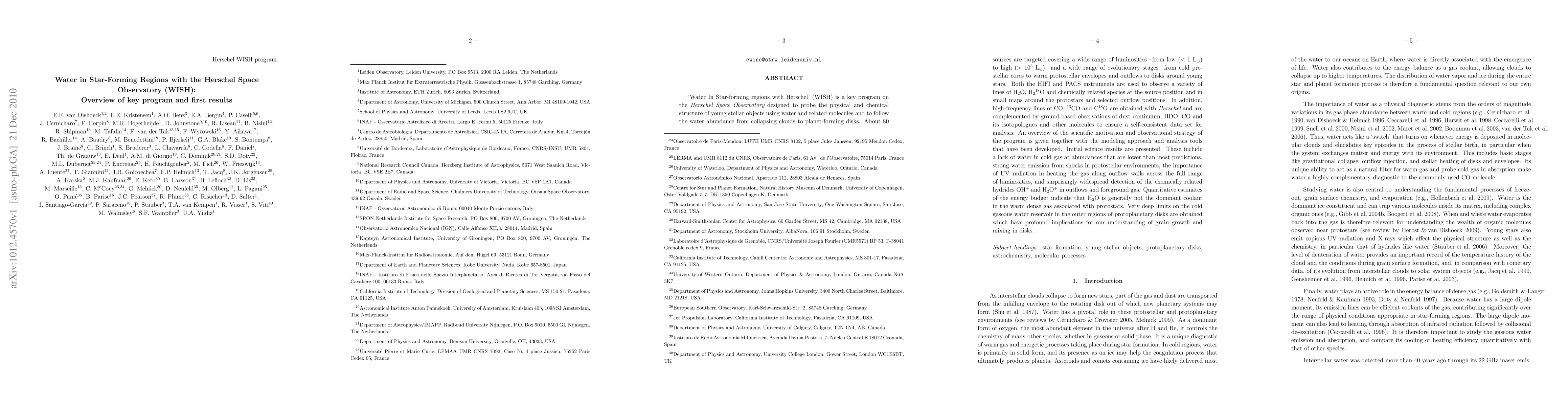 The WISH program on the Herschel Space Observatory investigates the physical and chemical structure of young stellar objects using water and related molecules. Initial results reveal lower water abundances in cold gas, significant water emission from protostellar shocks, and widespread detection of OH+ and H2O+ in outflows, indicating H2O is not the dominant coolant in warm dense gas.