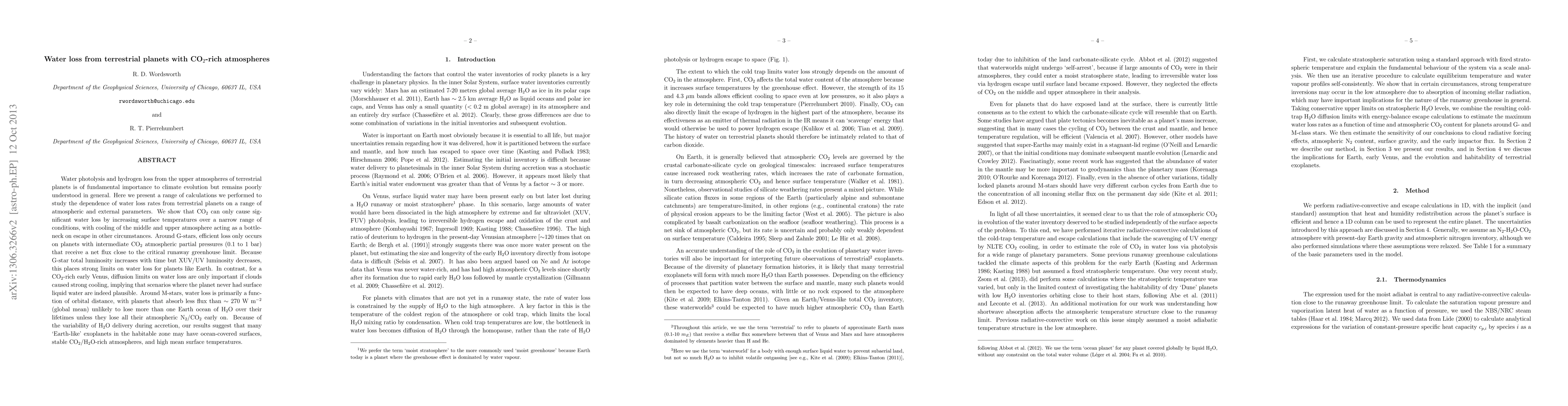 Water photolysis and hydrogen loss from the upper atmospheres of terrestrial planets is of fundamental importance to climate evolution but remains poorly understood in general. Here we present a range of calculations we performed to study the dependence of water loss rates from terrestrial planets on a range of atmospheric and external parameters. We show that CO2 can only cause significant water loss by increasing surface temperatures over a narrow range of conditions, with cooling of the middle and upper atmosphere acting as a bottleneck on escape in other circumstances. Around G-stars, efficient loss only occurs on planets with intermediate CO2 atmospheric partial pressures (0.1 to 1 bar) that receive a net flux close to the critical runaway greenhouse limit. Because G-star total luminosity increases with time but XUV/UV luminosity decreases, this places strong limits on water loss for planets like Earth. In contrast, for a CO2-rich early Venus, diffusion limits on water loss are only important if clouds caused strong cooling, implying that scenarios where the planet never had surface liquid water are indeed plausible. Around M-stars, water loss is primarily a function of orbital distance, with planets that absorb less flux than ~270 W/m^2 (global mean) unlikely to lose more than one Earth ocean of H2O over their lifetimes unless they lose all their atmospheric N2/CO2 early on. Because of the variability of H2O delivery during accretion, our results suggest that many 'Earth-like' exoplanets in the habitable zone may have ocean-covered surfaces, stable CO2/H2O-rich atmospheres, and high mean surface temperatures.