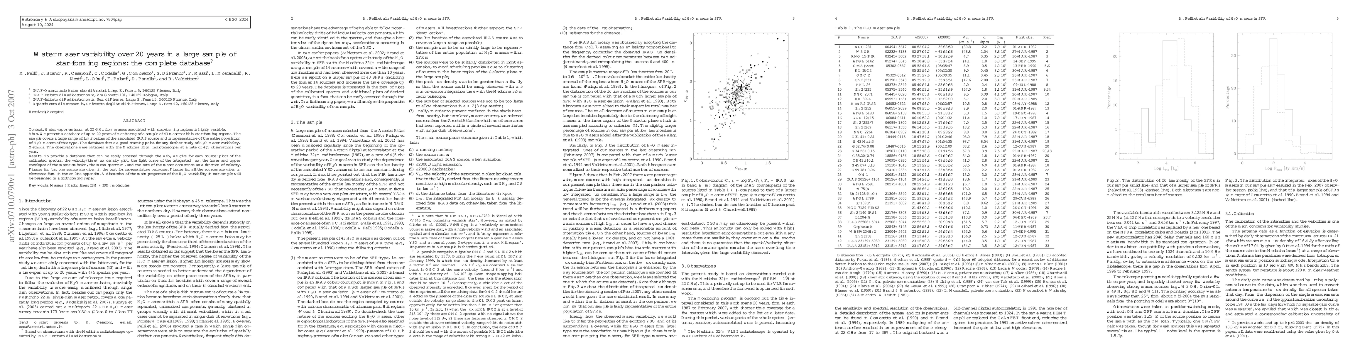 Context. Water vapor emission at 22 GHz from masers associated with star-forming regions is highly variable. Aims. We present a database of up to 20 years of monitoring of a sample of 43 masers within star-forming regions. The sample covers a large range of luminosities of the associated IRAS source and is representative of the entire population of H2O masers of this type. The database forms a good starting point for any further study of H2O maser variability. Methods. The observations were obtained with the Medicina 32-m radiotelescope, at a rate of 4-5 observations per year. Results. To provide a database that can be easily accessed through the web, we give for each source: plots of the calibrated spectra, the velocity-time-flux density plot, the light curve of the integrated flux, the lower and upper envelopes of the maser emission, the mean spectrum, and the rate of the maser occurrence as a function of velocity. Figures for just one source are given in the text for representative purposes. Figures for all the sources are given in electronic form in the on-line appendix. A discussion of the main properties of the H2O variability in our sample will be presented in a forthcoming paper.