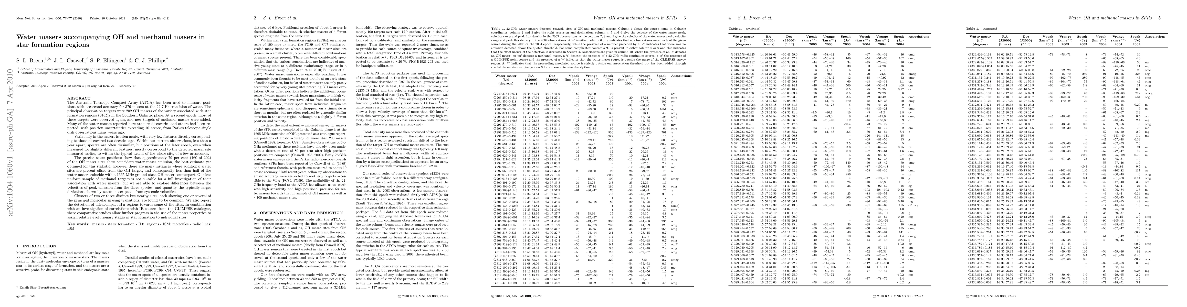 This study uses ATCA to precisely map 379 water masers, finding that 79% of OH maser sites also exhibit water maser emission, though many water masers are offset from OH counterparts. The research highlights the significant variability in maser features and explores velocity differences between OH, methanol, and water masers to better understand star formation stages.