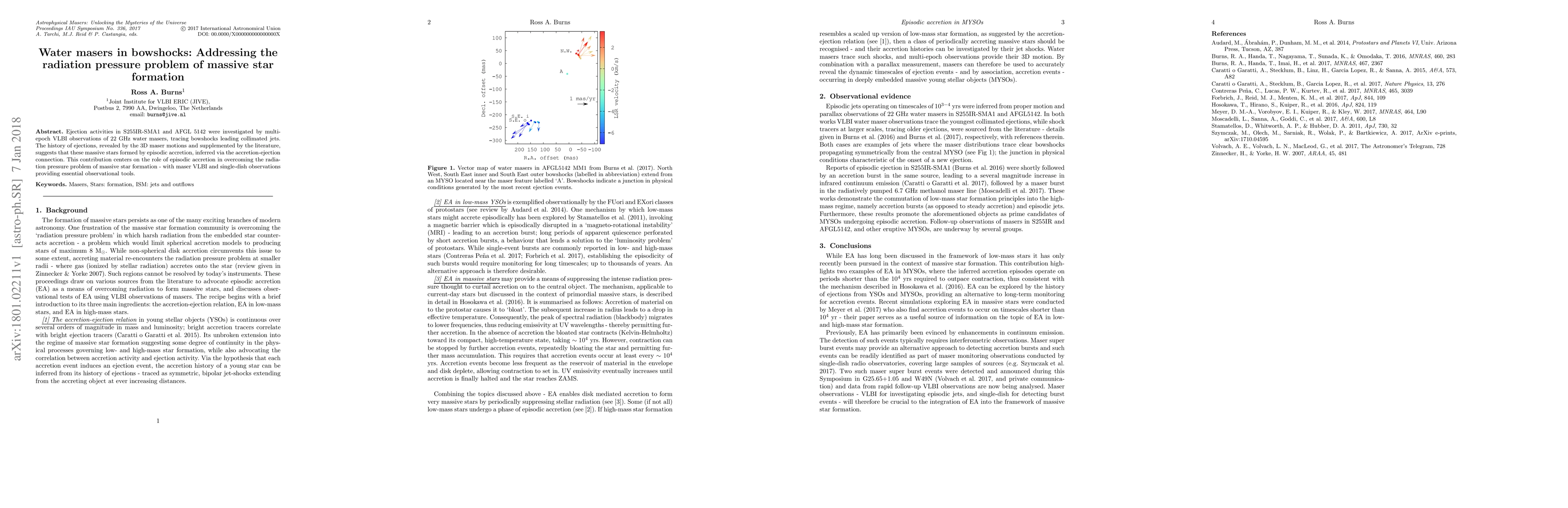This paper investigates ejection activities in two star-forming regions using VLBI observations of water masers, revealing episodic accretion as a mechanism for massive star formation that overcomes the radiation pressure problem. The study combines maser VLBI and single-dish observations to support this conclusion.