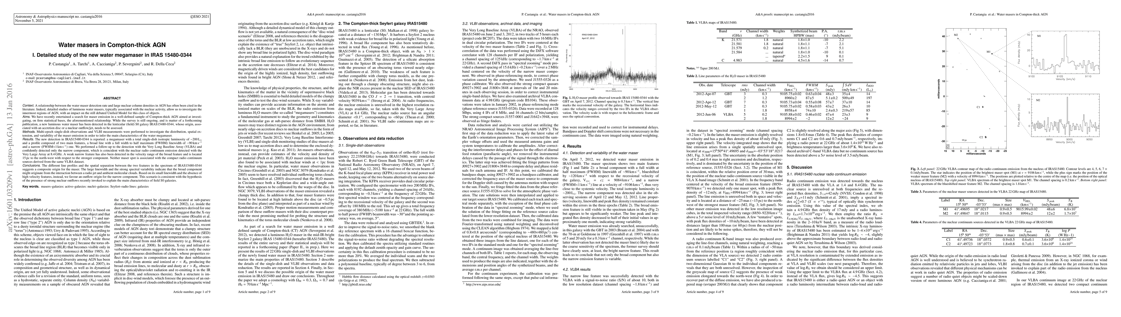 A relationship between the water maser detection rate and large nuclear column densities in AGN has often been cited in the literature. Indeed, detailed studies of luminous water masers, typically associated with the nuclear activity, allow us to investigate the innermost regions of AGN, with an impact on the still debated Unified Model for this class of objects.We have recently entertained a search for maser emission in a well-defined sample of Compton-thick AGN aimed at investigating, on firm statistical bases, the aforementioned relationship. While the survey is still ongoing, and is matter of a forthcoming publication, a new luminous water maser has been detected in the lenticular (field) S0 galaxy IRAS15480-0344, whose origin, associated with an accretion disc or a nuclear outflow/jet, needs to be assessed. Multi-epoch single-dish observations and VLBI measurements were performed to investigate the distribution, spatial extension, and variability of the maser emission in order to infer the main characteristics of the water megamaser. The new detection in IRAS15480-0344 is reported: a megamaser with a total single-dish isotropic luminosity of ~200 Lsun and a profile composed of two main features, a broad line with a full width to half maximum (FWHM) linewidth of ~90 km/s and a narrow (FWHM<1 km/s) one. We performed a follow-up to the detection with the Very Long Baseline Array (VLBA) and confidently detected only the narrow component, which is coincident with the nuclear radio continuum emission detected with the Very Large Array at 8.4 GHz. A weak narrow feature has also been detected in the velocity range of the broad feature and is located 15 pc to the north-west with respect to the stronger component. Neither maser spot is associated with the compact radio continuum sources derived from the same VLBA dataset. [Abridged]