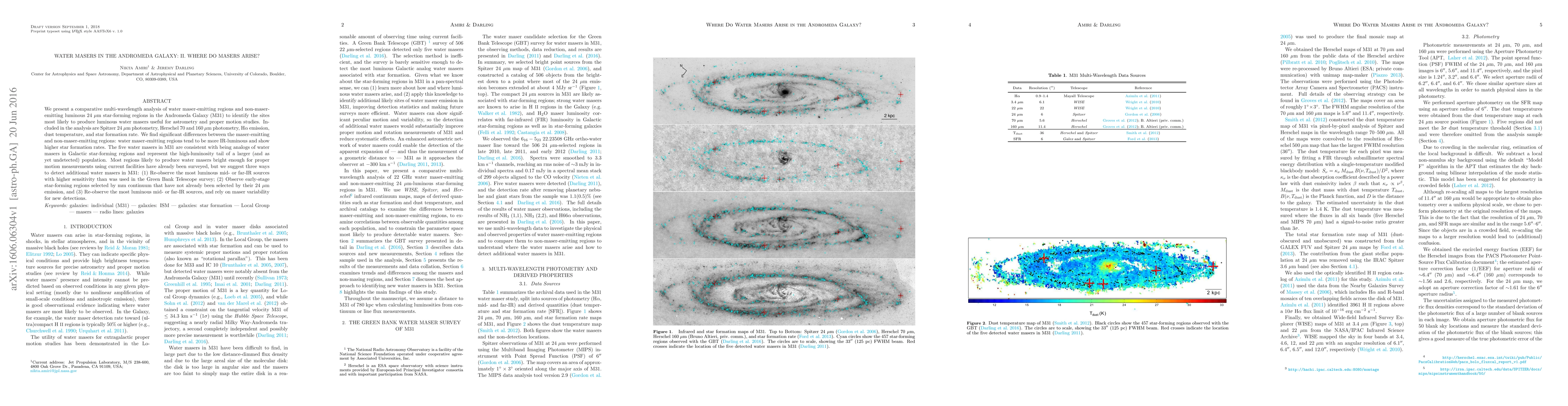 We present a comparative multi-wavelength analysis of water maser-emitting regions and non-maser-emitting luminous 24 micron star-forming regions in the Andromeda Galaxy (M31) to identify the sites most likely to produce luminous water masers useful for astrometry and proper motion studies. Included in the analysis are Spitzer 24 micron photometry, Herschel 70 and 160 micron photometry, H$\alpha$ emission, dust temperature, and star formation rate. We find significant differences between the maser-emitting and non-maser-emitting regions: water maser-emitting regions tend to be more IR-luminous and show higher star formation rates. The five water masers in M31 are consistent with being analogs of water masers in Galactic star-forming regions and represent the high-luminosity tail of a larger (and as yet undetected) population. Most regions likely to produce water masers bright enough for proper motion measurements using current facilities have already been surveyed, but we suggest three ways to detect additional water masers in M31: (1) Re-observe the most luminous mid- or far-IR sources with higher sensitivity than was used in the Green Bank Telescope survey; (2) Observe early-stage star-forming regions selected by mm continuum that have not already been selected by their 24 micron emission, and (3) Re-observe the most luminous mid- or far-IR sources, and rely on maser variability for new detections.