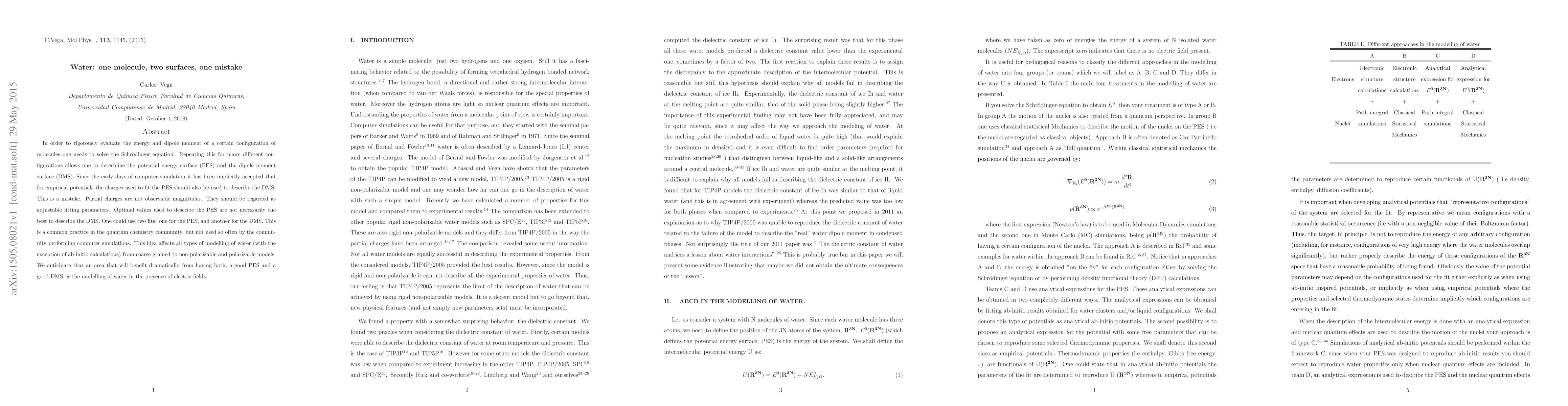 Researchers found that using partial charges to fit both potential energy surface (PES) and dipole moment surface (DMS) is a common mistake in computer simulations of water molecules. They suggest using separate fits for PES and DMS to improve modeling accuracy, particularly in the presence of electric fields.