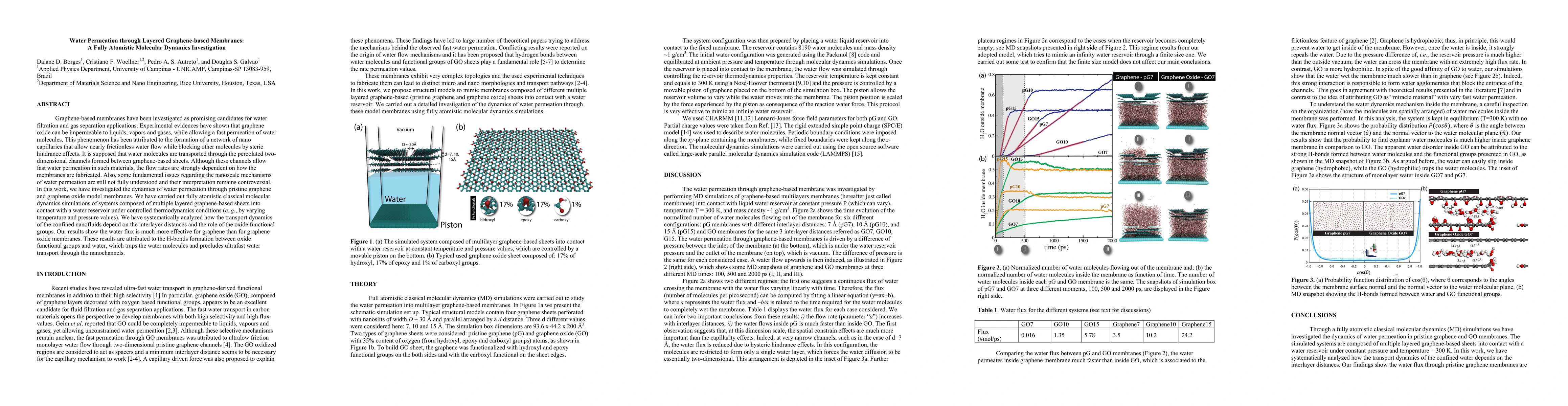 This study investigates the dynamics of water permeation through pristine graphene and graphene oxide membranes using atomistic molecular dynamics simulations. Results reveal that pristine graphene allows faster water flux than graphene oxide due to hydrogen bonding between oxide groups and water, which impedes ultrafast transport through nanochannels.