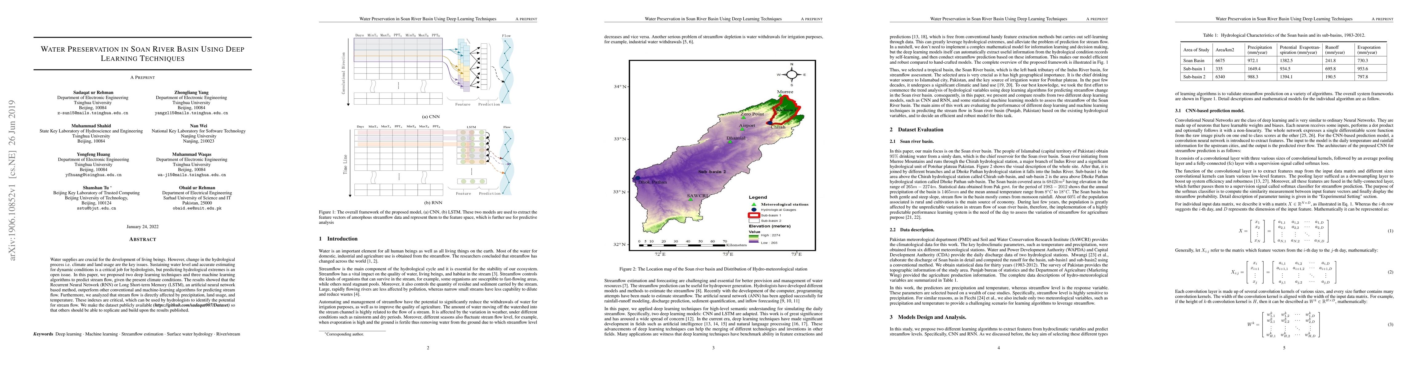 Water supplies are crucial for the development of living beings. However, change in the hydrological process i.e. climate and land usage are the key issues. Sustaining water level and accurate estimating for dynamic conditions is a critical job for hydrologists, but predicting hydrological extremes is an open issue. In this paper, we proposed two deep learning techniques and three machine learning algorithms to predict stream flow, given the present climate conditions. The results showed that the Recurrent Neural Network (RNN) or Long Short-term Memory (LSTM), an artificial neural network based method, outperform other conventional and machine-learning algorithms for predicting stream flow. Furthermore, we analyzed that stream flow is directly affected by precipitation, land usage, and temperature. These indexes are critical, which can be used by hydrologists to identify the potential for stream flow. We make the dataset publicly available (https://github.com/sadaqat007/Dataset) so that others should be able to replicate and build upon the results published.