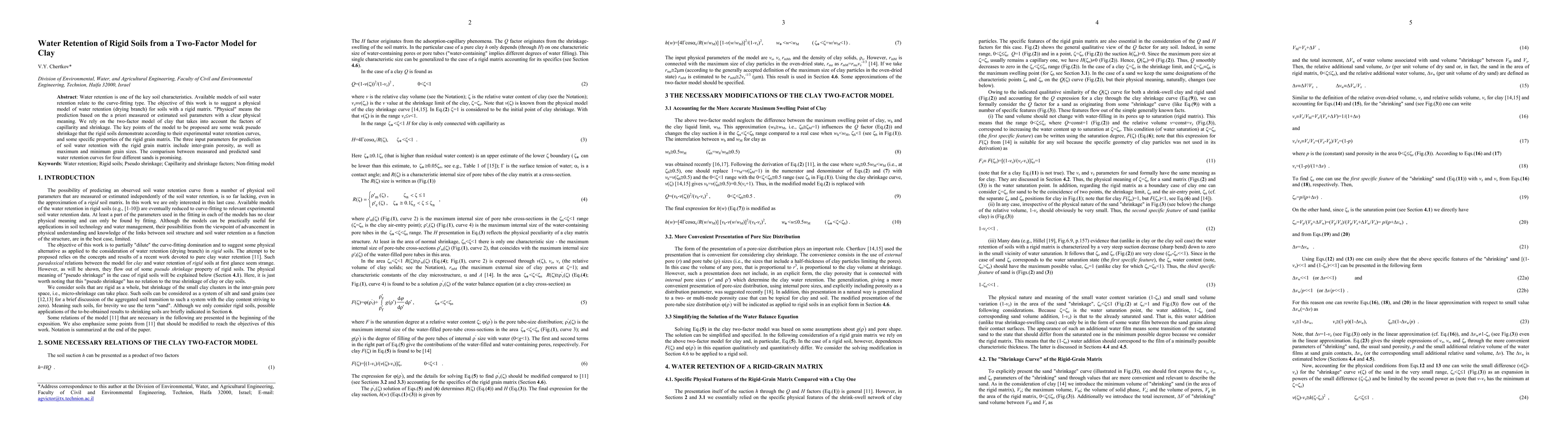 This paper proposes a physical model for water retention in rigid soils based on a two-factor model for clay, considering capillarity and shrinkage. The model uses three input parameters: inter-grain porosity and maximum/minimum grain sizes, and shows promising results in predicting water retention curves for various sands.