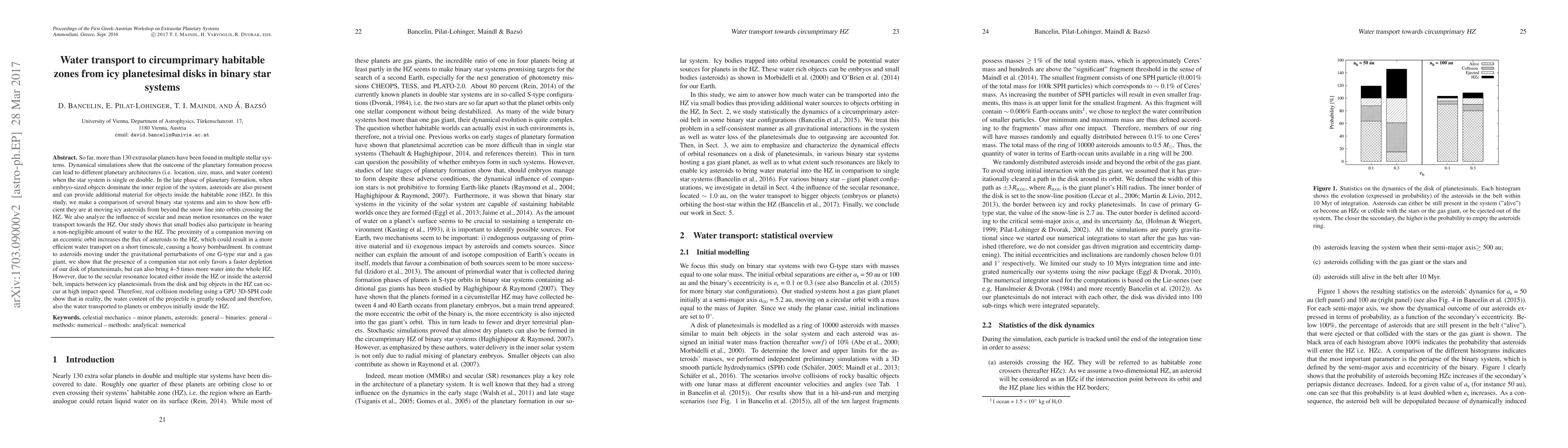 This study investigates the efficiency of water transport to circumprimary habitable zones in binary star systems via icy planetesimal disks. It finds that the presence of a companion star can significantly increase the water flux to the habitable zone, though high-speed impacts reduce the actual water content delivered.