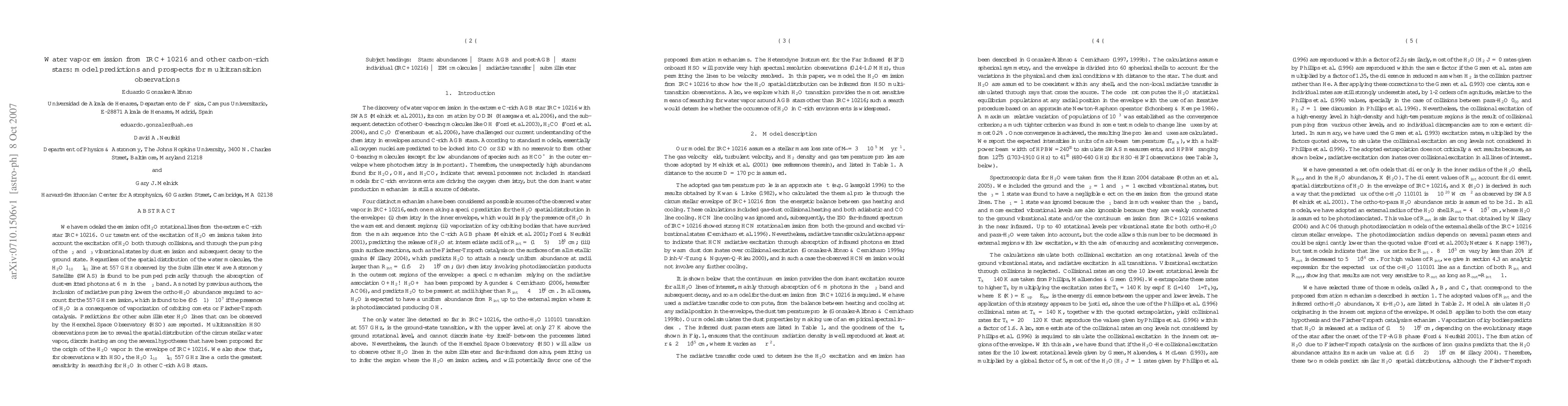 Researchers modeled water vapor emission from IRC+10216, a carbon-rich star, and found that dust emission pumps the 557 GHz line through radiative processes. Multitransition observations with the Herschel Space Observatory can reveal the spatial distribution of circumstellar water vapor.