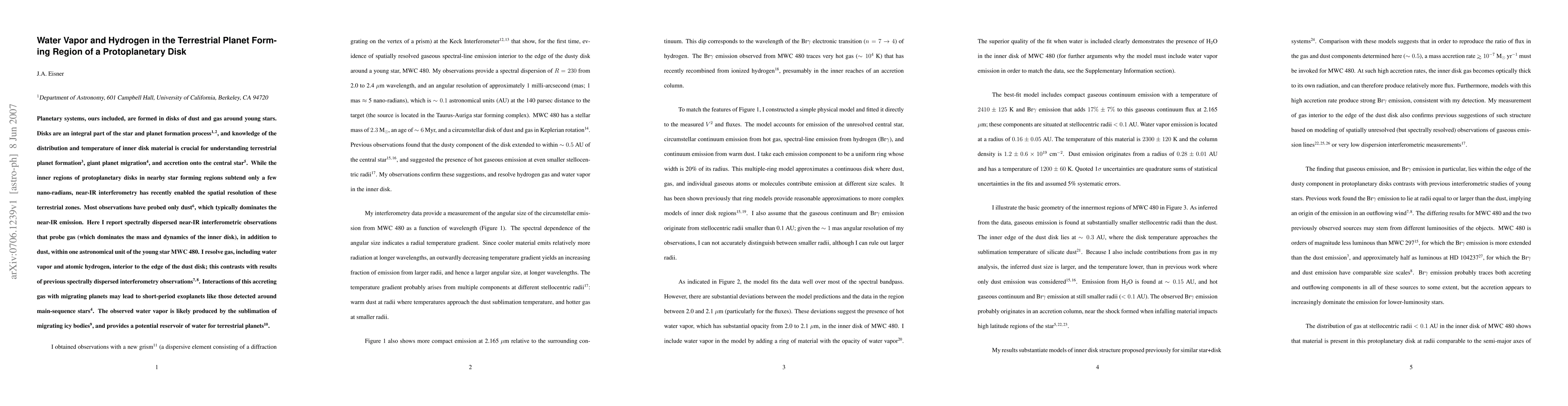 This paper reports near-IR interferometric observations revealing gas, including water vapor and atomic hydrogen, within one astronomical unit of the young star MWC 480, contrasting with previous dust-only observations. The detected water vapor likely originates from the sublimation of icy bodies, potentially contributing to the formation of terrestrial planets.