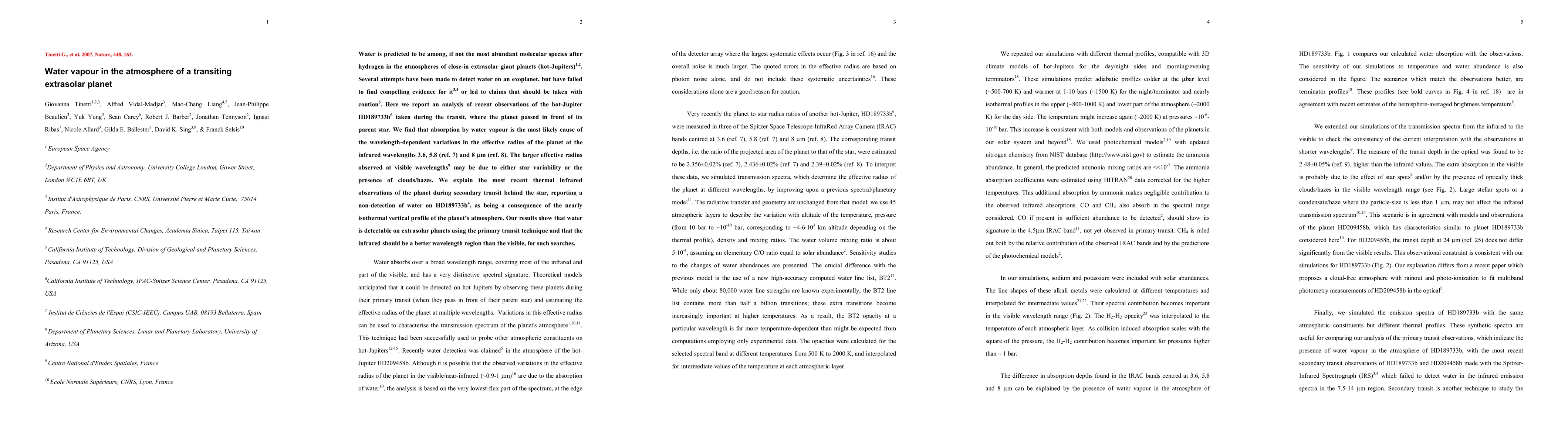 This research detects water vapour in the atmosphere of the hot-Jupiter HD189733b during transit using infrared wavelengths, indicating its presence through wavelength-dependent variations in the planet's effective radius. However, secondary transit observations did not detect water, attributed to the planet's nearly isothermal atmospheric profile.