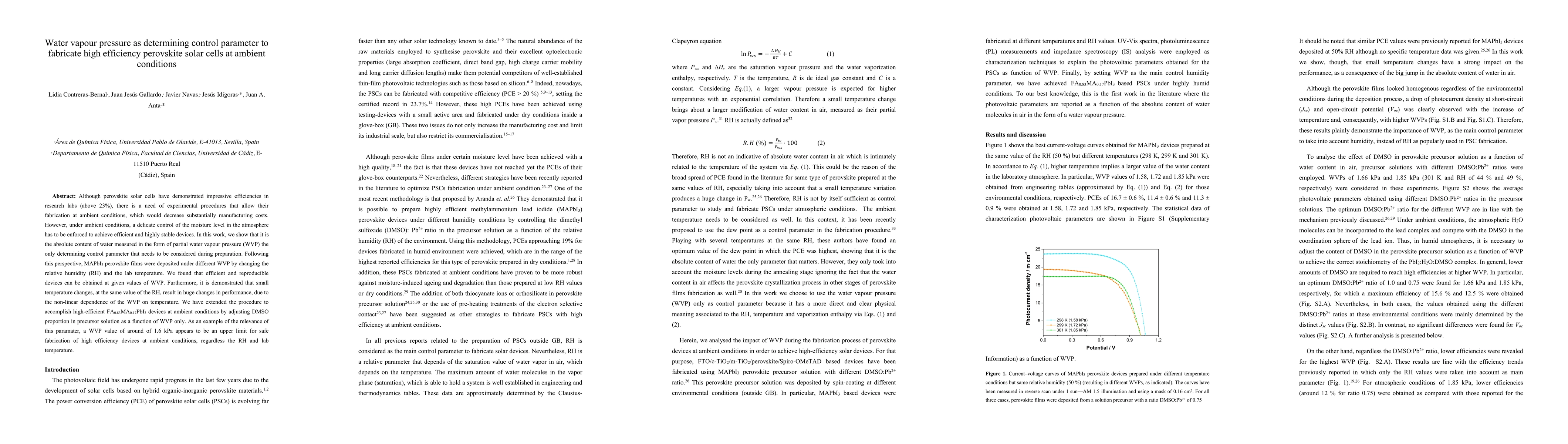 This paper demonstrates that controlling the partial water vapour pressure (WVP) is crucial for fabricating high-efficiency perovskite solar cells at ambient conditions, significantly reducing manufacturing costs. The study shows that efficient devices can be produced by adjusting WVP, which depends non-linearly on temperature, and optimizing the precursor solution composition based on WVP.