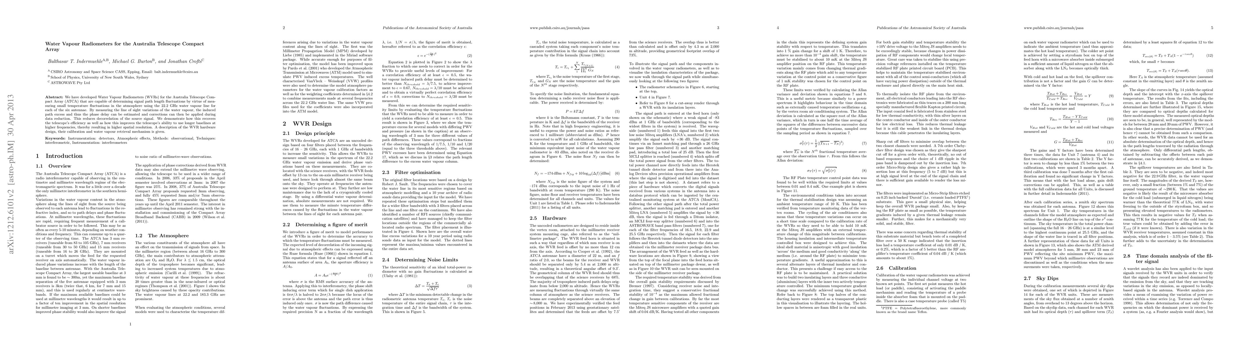 This paper details the development of Water Vapour Radiometers (WVRs) for the Australia Telescope Compact Array (ATCA) to measure atmospheric temperature fluctuations, which helps correct signal path length fluctuations and enhances telescope efficiency and spatial resolution. The WVRs utilize the 22.2 GHz water vapour line to estimate phase delays and improve data reduction.