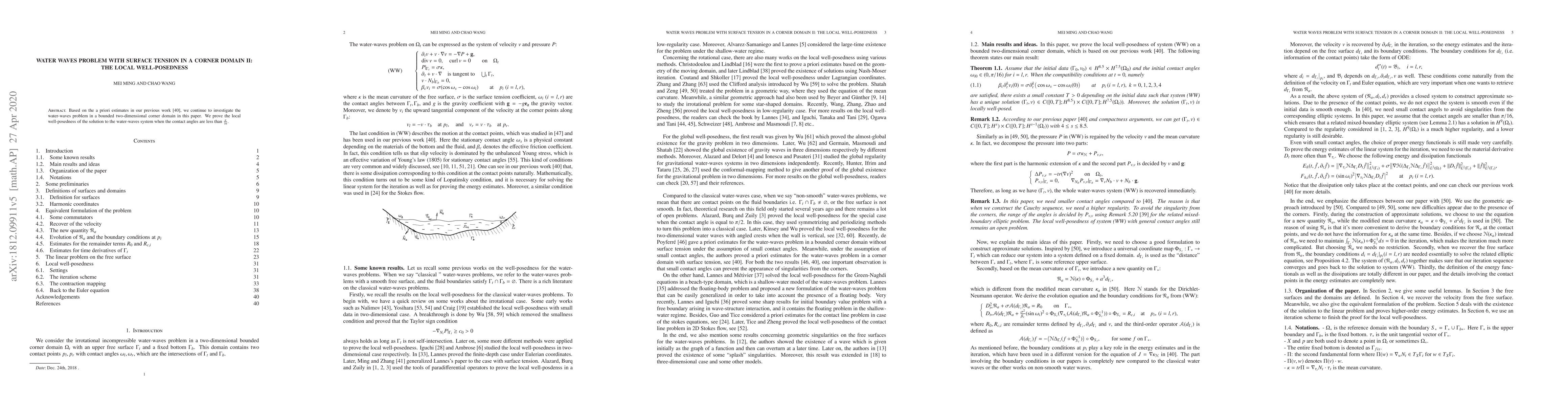This paper builds on prior work to study the water-waves problem in a bounded two-dimensional corner domain, focusing on proving local well-posedness of solutions under the condition that contact angles are less than $\frac{\pi}{16}$. The analysis leverages a priori estimates from previous research.