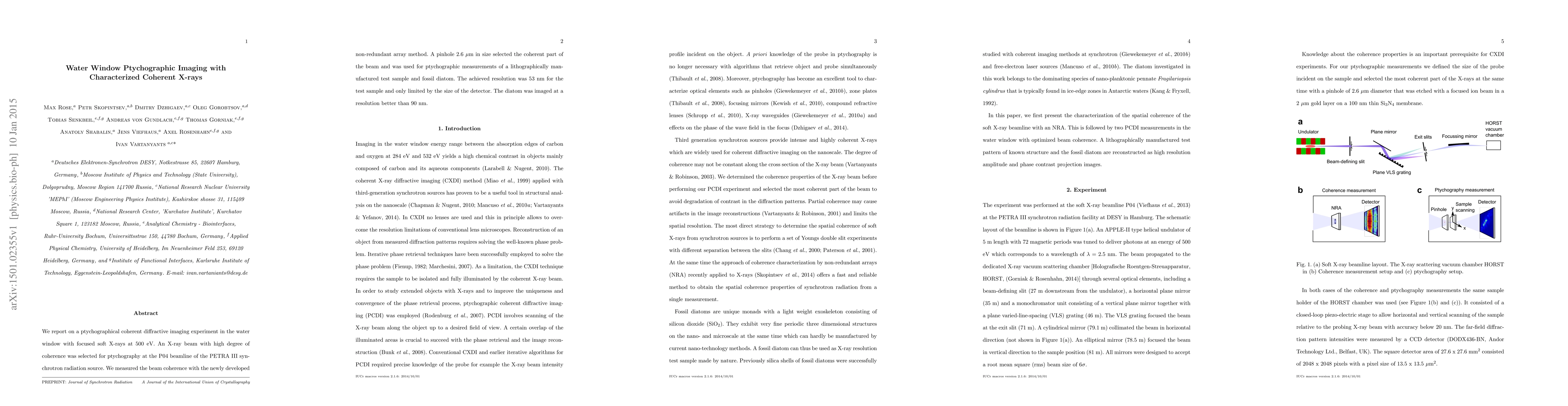 This paper details a ptychographic imaging experiment using focused soft X-rays at 500 eV in the water window, achieving resolutions of 53 nm for a test sample and better than 90 nm for a fossil diatom. The experiment utilized a high coherence X-ray beam and a novel non-redundant array method for coherence measurement.