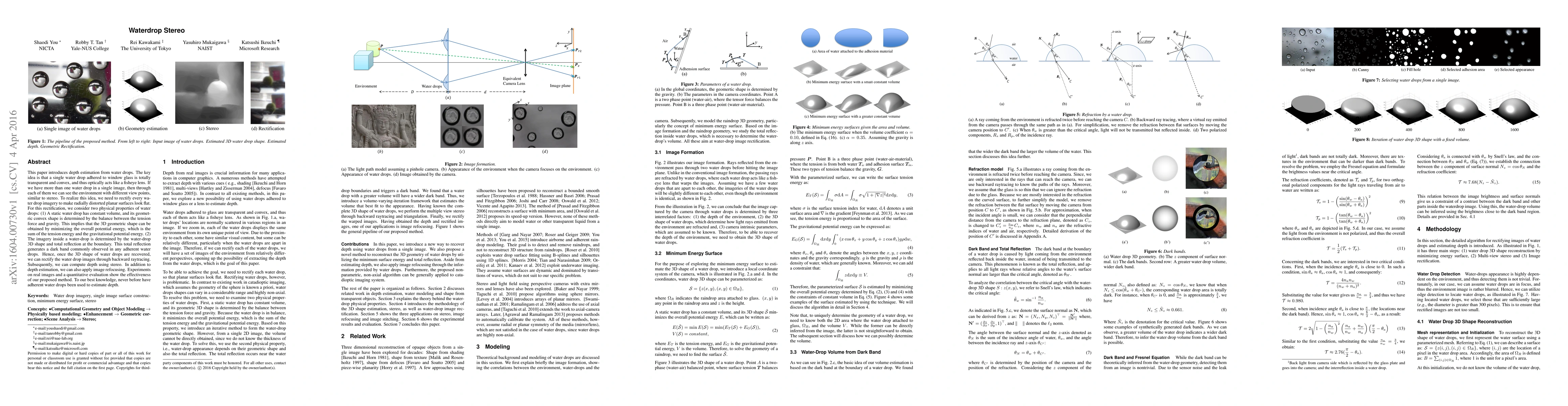 This paper introduces a new method for depth estimation using water drops on glass, leveraging optical properties of water to create pseudo-stereo images.
