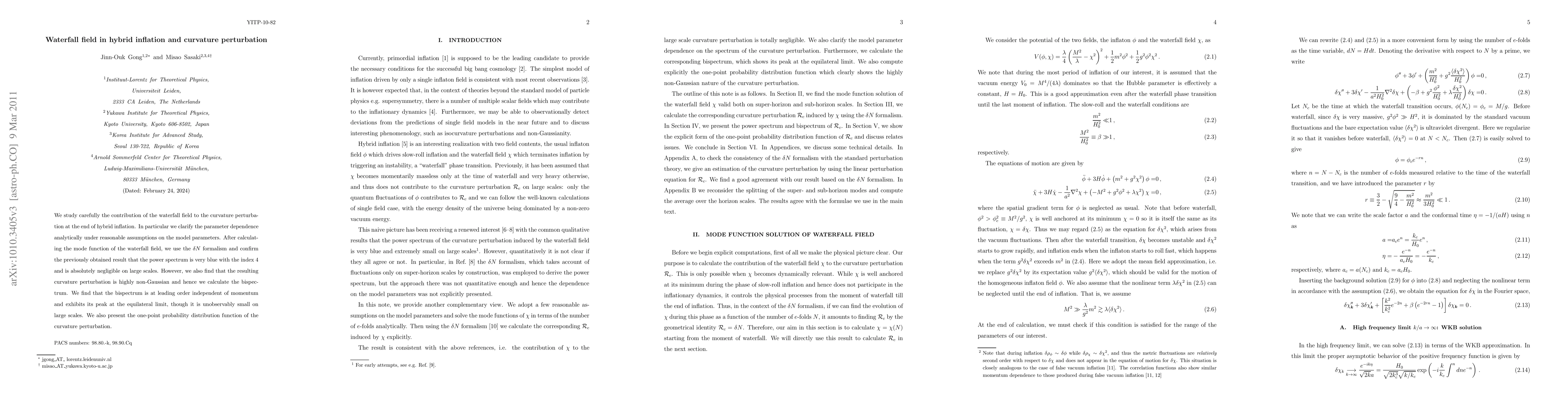 This paper investigates the impact of the waterfall field on curvature perturbations during hybrid inflation, confirming a very blue power spectrum with an index of 4 that is negligible on large scales. It finds the resulting curvature perturbation to be highly non-Gaussian, with a bispectrum peaking at the equilateral limit but remaining unobservably small on large scales.