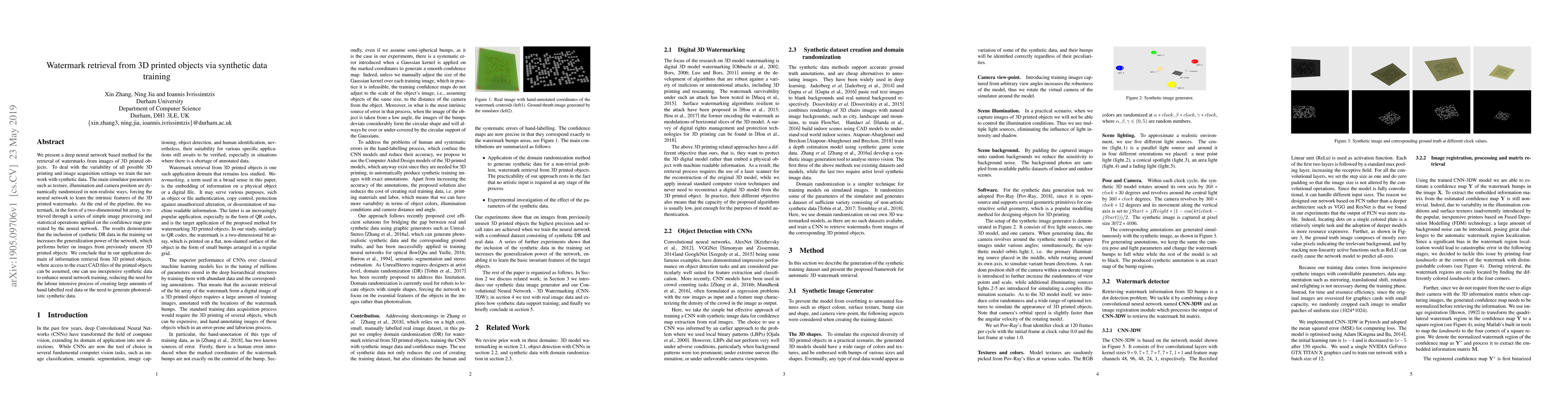 Researchers developed a deep neural network method to retrieve watermarks from 3D printed objects using synthetic data training, improving generalization power on unseen images.