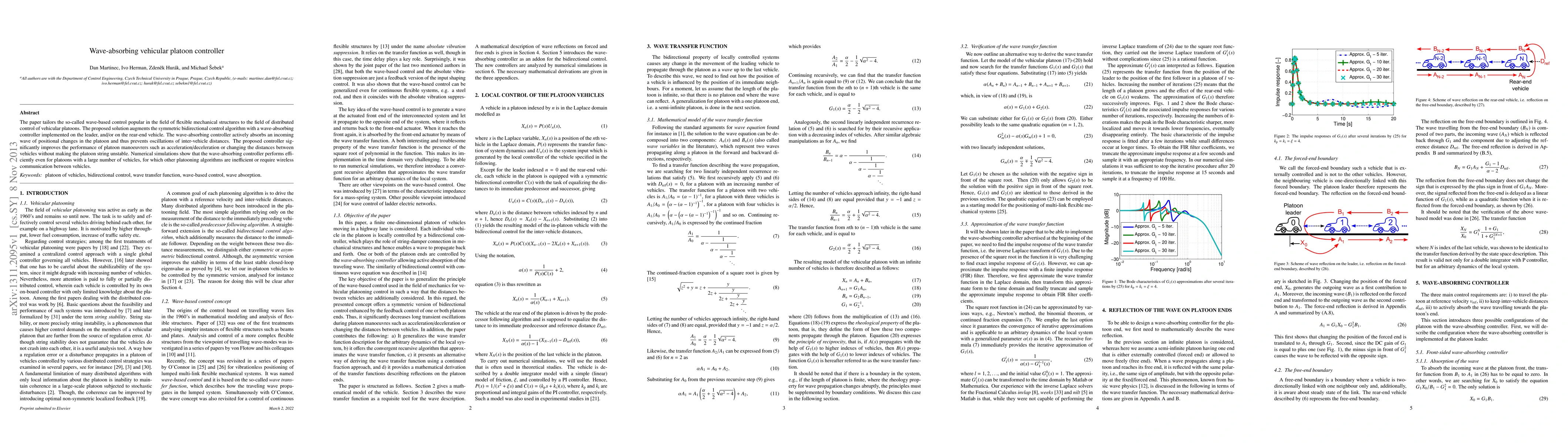 The paper proposes a wave-absorbing vehicular platoon controller that adapts wave-based control from flexible mechanical structures to vehicular platoons, enhancing stability during maneuvers without requiring inter-vehicle communication. Numerical simulations demonstrate its efficiency, especially for large platoons.