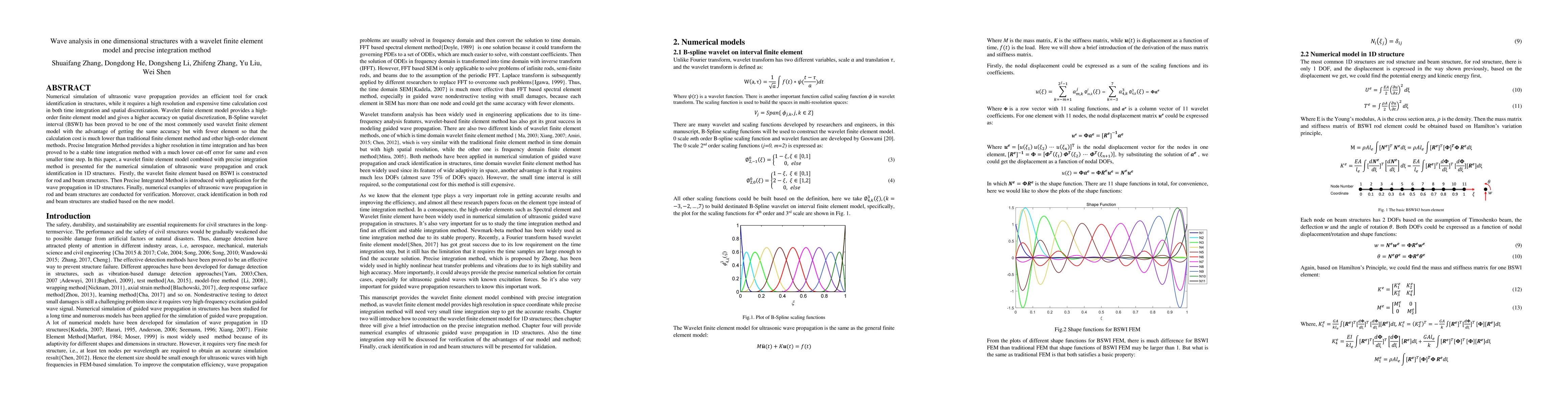 This paper presents a wavelet finite element model combined with a precise integration method for simulating ultrasonic wave propagation in 1D structures, aiming to enhance accuracy and reduce computational costs. The proposed method uses B-Spline wavelet interval for spatial discretization and precise integration for time integration, validated through numerical examples for crack identification in rod and beam structures.