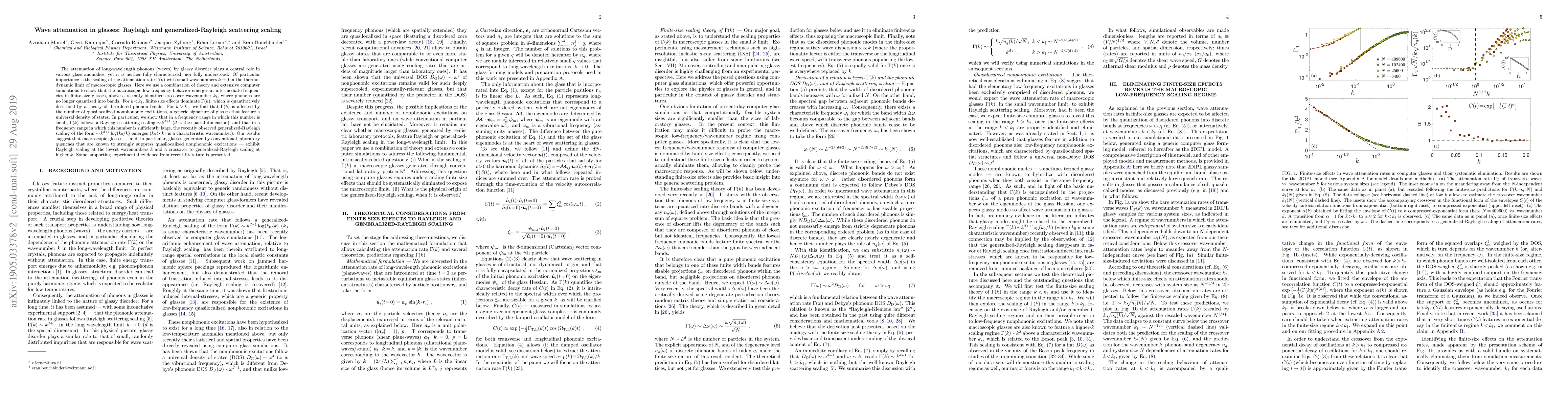 The attenuation of long-wavelength phonons (waves) by glassy disorder plays a central role in various glass anomalies, yet it is neither fully characterized, nor fully understood. Of particular importance is the scaling of the attenuation rate $\Gamma(k)$ with small wavenumbers $k\!\to\!0$ in the thermodynamic limit of macroscopic glasses. Here we use a combination of theory and extensive computer simulations to show that the macroscopic low-frequency behavior emerges at intermediate frequencies in finite-size glasses, above a recently identified crossover wavenumber $k_\dagger$, where phonons are no longer quantized into bands. For $k\!<\!k_\dagger$, finite-size effects dominate $\Gamma(k)$, which is quantitatively described by a theory of disordered phonon bands. For $k\!>\!k_\dagger$, we find that $\Gamma(k)$ is affected by the number of quasilocalized nonphononic excitations, a generic signature of glasses that feature a universal density of states. In particular, we show that in a frequency range in which this number is small, $\Gamma(k)$ follows a Rayleigh scattering scaling $\sim\!k^{d+1}$ ($d$ is the spatial dimension), and that in a frequency range in which this number is sufficiently large, the recently observed generalized-Rayleigh scaling of the form $\sim\!k^{d+1}\log\!{(k_0/k)}$ emerges ($k_0\!>k_\dagger$ is a characteristic wavenumber). Our results suggest that macroscopic glasses --- and, in particular, glasses generated by conventional laboratory quenches that are known to strongly suppress quasilocalized nonphononic excitations --- exhibit Rayleigh scaling at the lowest wavenumbers $k$ and a crossover to generalized-Rayleigh scaling at higher $k$. Some supporting experimental evidence from recent literature is presented.
