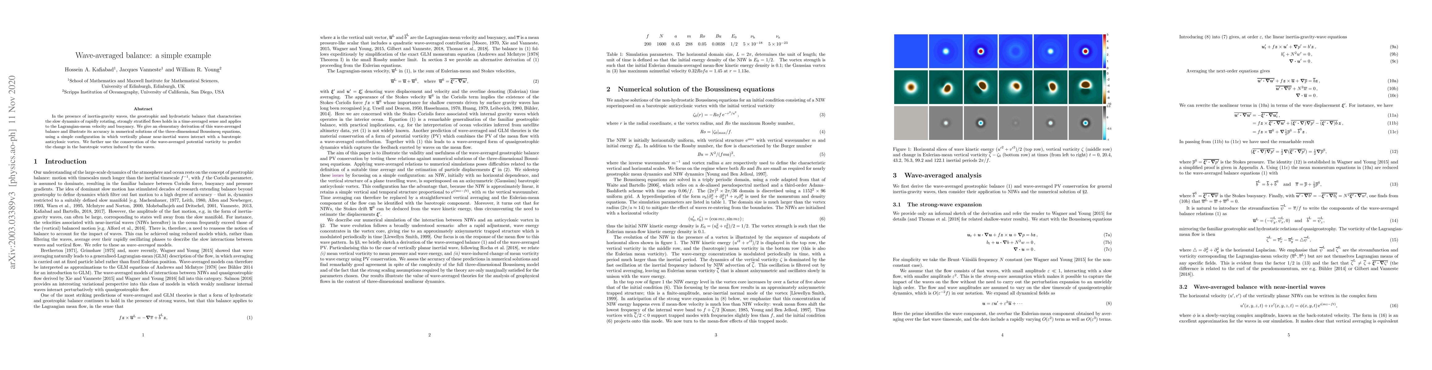 In the presence of inertia-gravity waves, the geostrophic and hydrostatic balance that characterises the slow dynamics of rapidly rotating, strongly stratified flows holds in a time-averaged sense and applies to the Lagrangian-mean velocity and buoyancy. We give an elementary derivation of this wave-averaged balance and illustrate its accuracy in numerical solutions of the three-dimensional Boussinesq equations, using a simple configuration in which vertically planar near-inertial waves interact with a barotropic anticylonic vortex. We further use the conservation of the wave-averaged potential vorticity to predict the change in the barotropic vortex induced by the waves.