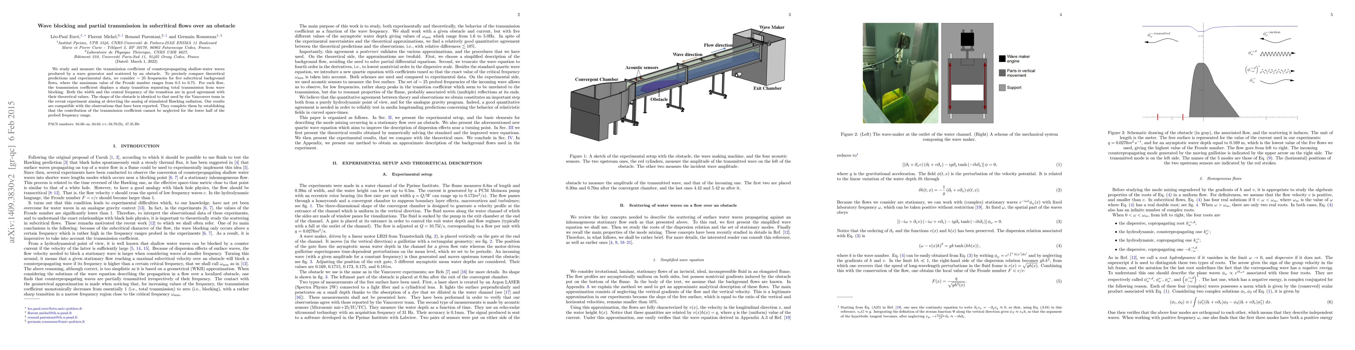 Researchers studied wave behavior over an obstacle in subcritical flows, finding a sharp transition between total transmission and wave-blocking; their results match theoretical predictions and complement previous observations.