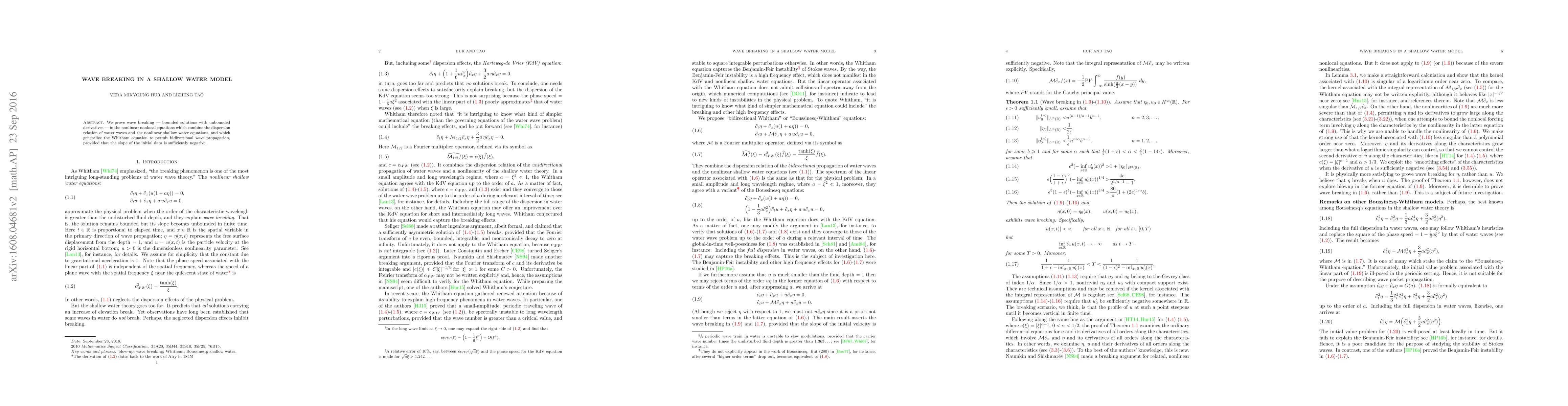 We prove wave breaking --- bounded solutions with unbounded derivatives --- in the nonlinear nonlocal equations which combine the dispersion relation of water waves and the nonlinear shallow water equations, and which generalize the Whitham equation to permit bidirectional wave propagation, provided that the slope of the initial data is sufficiently negative.