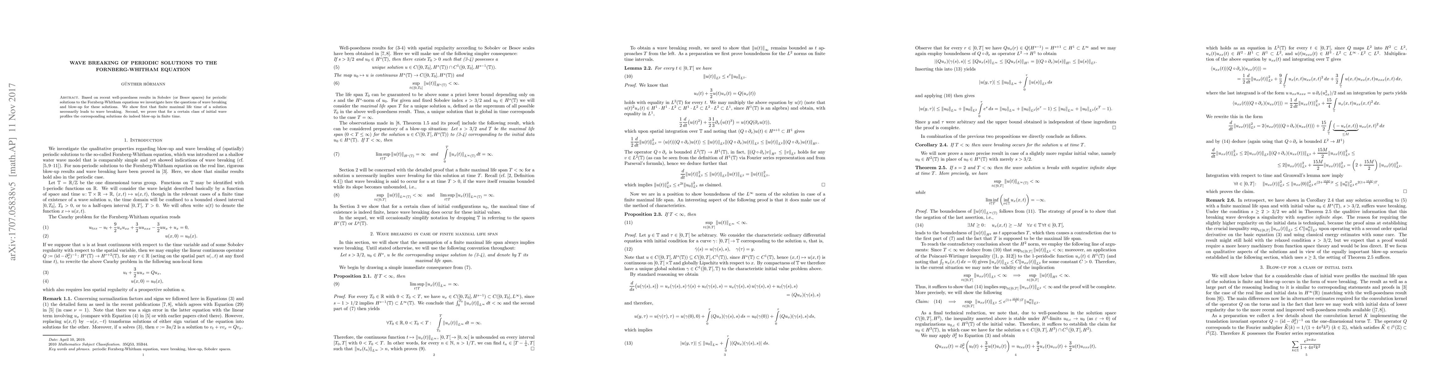 This paper investigates wave breaking and blow-up phenomena for periodic solutions to the Fornberg-Whitham equation, demonstrating that finite maximal life time results in wave breaking and proving blow-up for specific initial wave profiles in finite time.