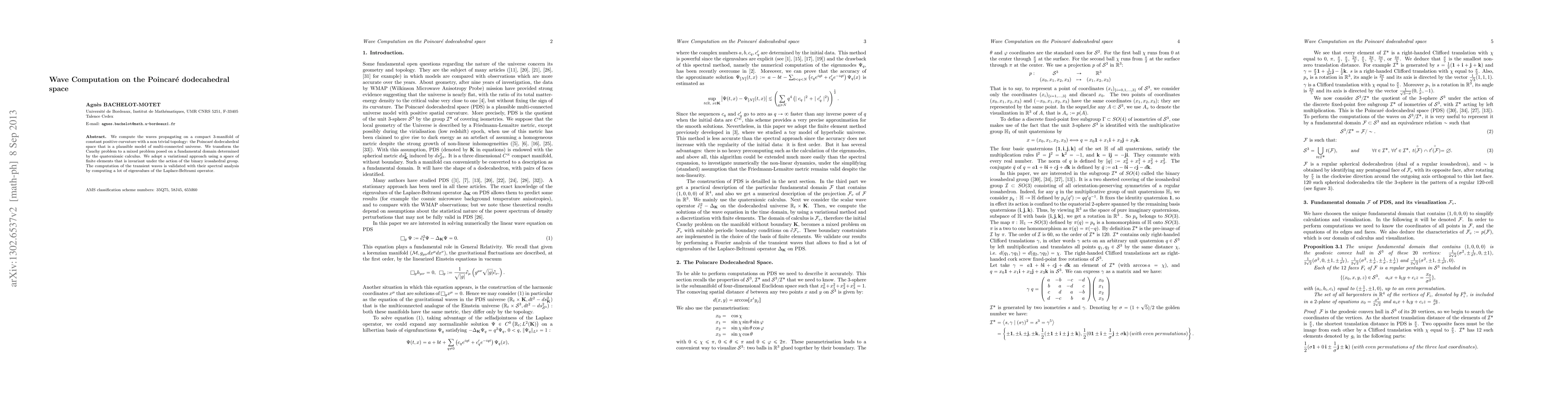 This paper computes waves on the Poincar\'e dodecahedral space, a model of a multi-connected universe, using a variational approach with finite elements invariant under the binary icosahedral group. The study validates wave computations through spectral analysis of numerous eigenvalues of the Laplace-Beltrami operator.