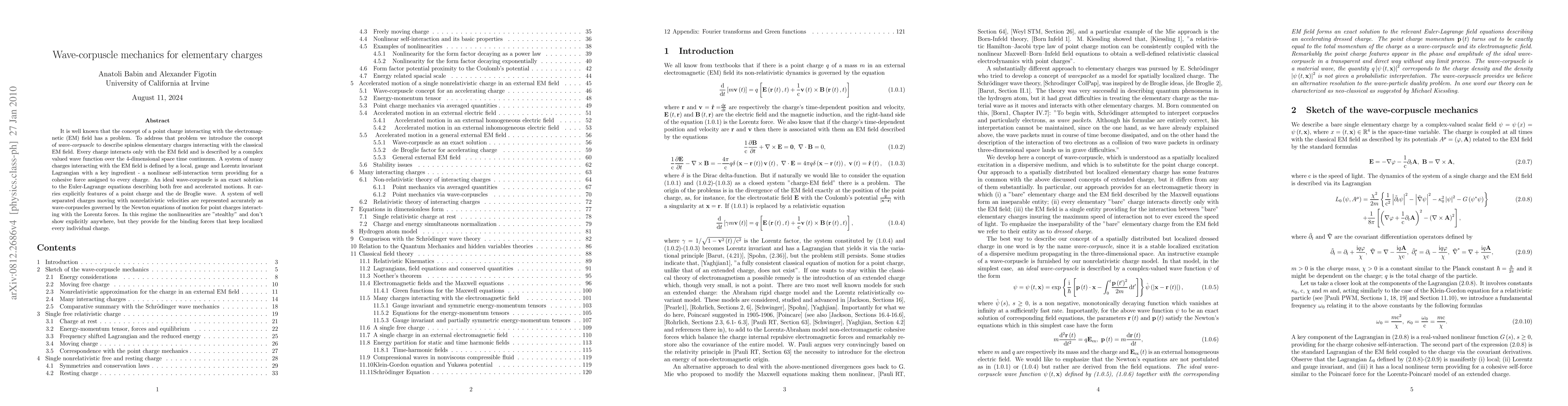 It is well known that a concept of point charge interacting with electromagnetic (EM) field has a problem. To address that problem we introduce a concept of wave-corpuscle to describe spinless elementary charges interacting with the classical EM field. Every charge interacts only with the EM field and is described by a complex valued wave function over 4-dimensional space time continuum. A system of many charges interacting with the EM field is defined by a local, gauge and Lorentz invariant Lagrangian with a key ingredient - a nonlinear self-interaction term providing for a cohesive force assigned to every charge. An ideal wave-corpuscle is an exact solution to the Euler-Lagrange equations describing both free or accelerated motion. It carries explicitly features of a point charge and the de Broglie wave. A system of well separated charges moving with nonrelativistic velocities are represented accurately as wave-corpuscles governed by the Newton motion equations for point charges interacting with the Lorentz forces. In this regime the nonlinearities are "stealthy" and don't show explicitly anywhere, but they provide for binding forces that keep localized every individual charge.