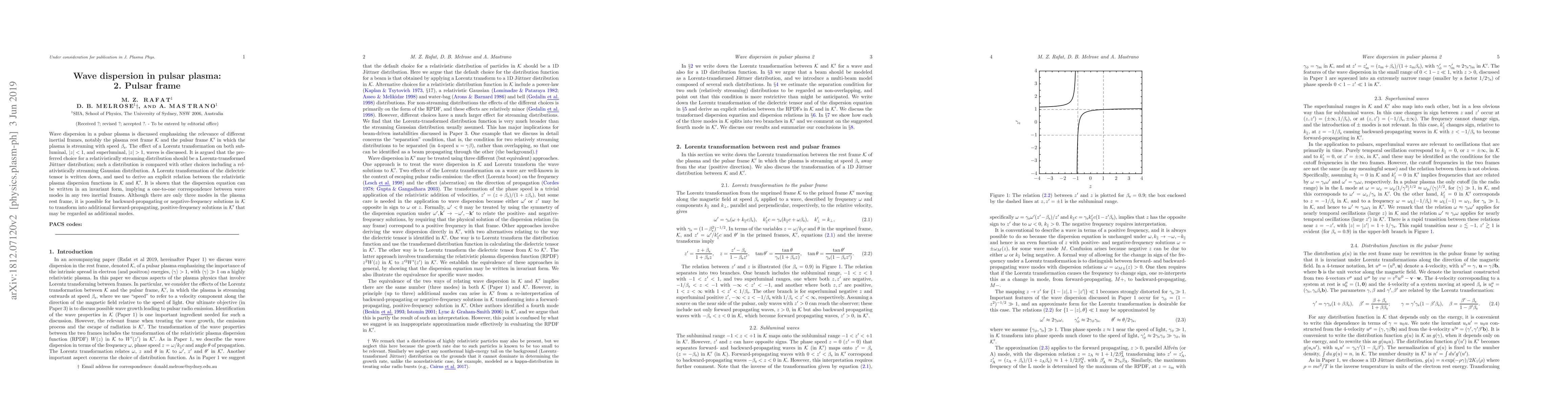 Researchers study wave dispersion in pulsar plasma across different inertial frames, finding a one-to-one correspondence between wave modes in various frames and proposing a new relativistic plasma dispersion function.