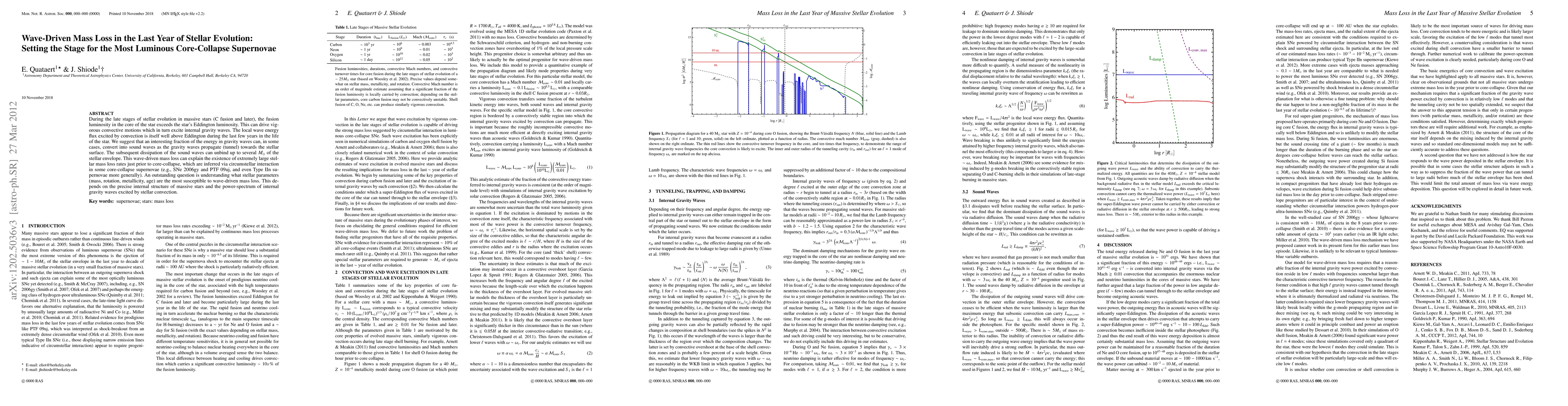 During the late stages of stellar evolution in massive stars (C fusion and later), the fusion luminosity in the core of the star exceeds the star's Eddington luminosity. This can drive vigorous convective motions which in turn excite internal gravity waves. The local wave energy flux excited by convection is itself well above Eddington during the last few years in the life of the star. We suggest that an interesting fraction of the energy in gravity waves can, in some cases, convert into sound waves as the gravity waves propagate (tunnel) towards the stellar surface. The subsequent dissipation of the sound waves can unbind up to several $M_\odot$ of the stellar envelope. This wave-driven mass loss can explain the existence of extremely large stellar mass loss rates just prior to core-collapse, which are inferred via circumstellar interaction in some core-collapse supernovae (e.g., SNe 2006gy and PTF 09uj, and even Type IIn supernovae more generally). An outstanding question is understanding what stellar parameters (mass, rotation, metallicity, age) are the most susceptible to wave-driven mass loss. This depends on the precise internal structure of massive stars and the power-spectrum of internal gravity waves excited by stellar convection.