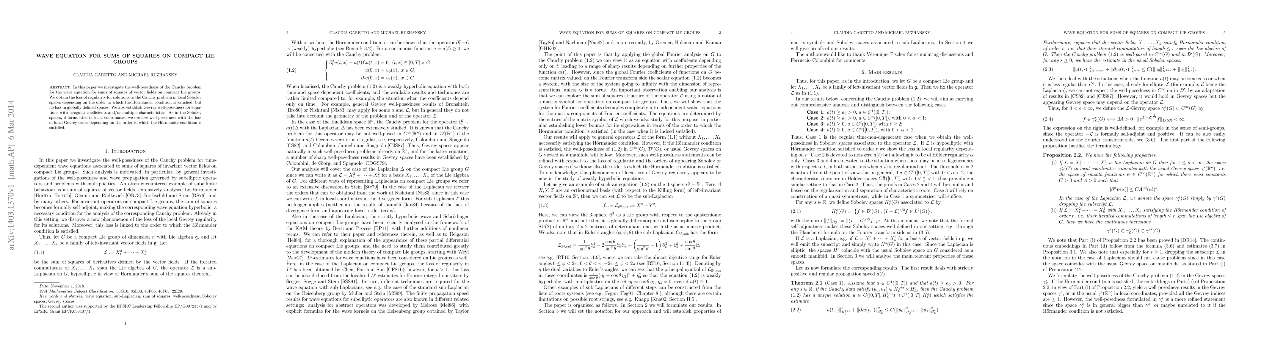 In this paper we investigate the well-posedness of the Cauchy problem for the wave equation for sums of squares of vector fields on compact Lie groups. We obtain the loss of regularity for solutions to the Cauchy problem in local Sobolev spaces depending on the order to which the H\"ormander condition is satisfied, but no loss in globally defined spaces. We also establish Gevrey well-posedness for equations with irregular coefficients and/or multiple characteristics. As in the Sobolev spaces, if formulated in local coordinates, we observe well-posedness with the loss of local Gevrey order depending on the order to which the H\"ormander condition is satisfied.