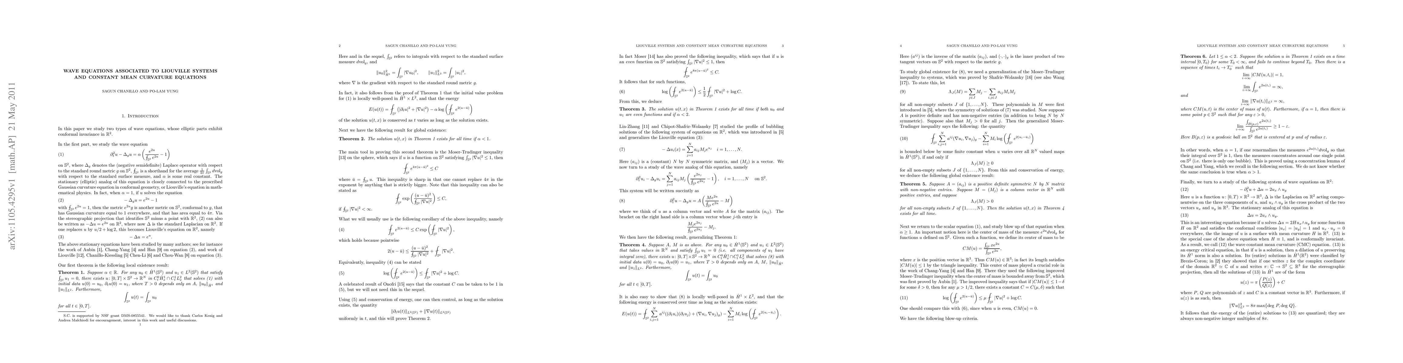 We study the wave analog of the Liouville equation and the constant mean curvature equations in 2 space dimensions, which are energy critical. We exhibit a blow-up criteria for the former using tools from conformal geometry, and we exhibit finite time blow-up for the latter under suitable assumptions on the initial data.