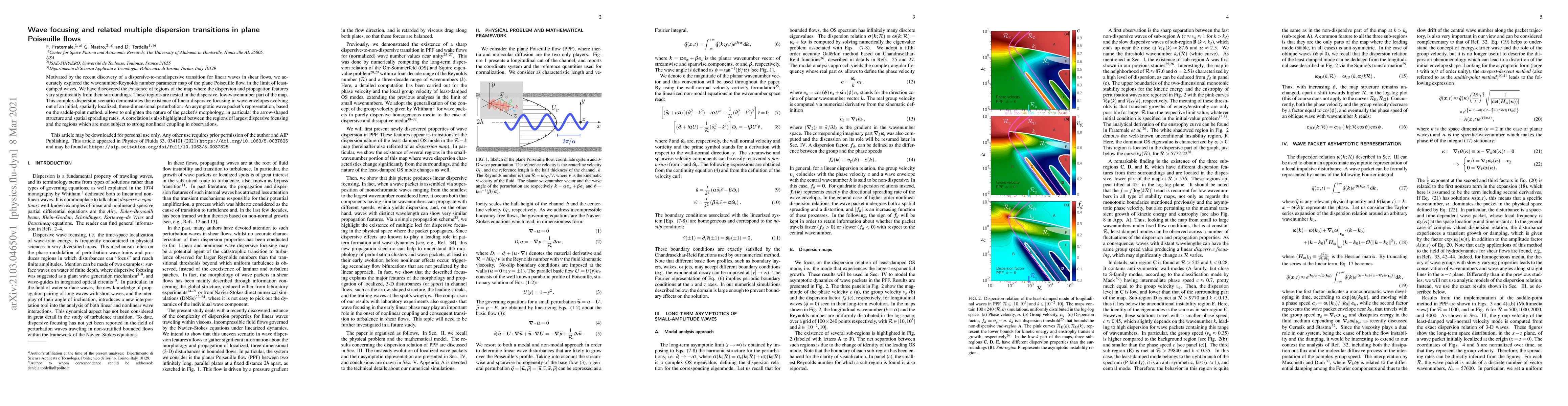 Researchers discovered regions of varying dispersion and propagation in plane Poiseuille flows, highlighting linear dispersive focusing in wave envelopes from localized perturbations. These findings have implications for understanding nonlinear coupling and spatial spreading rates in fluid dynamics.