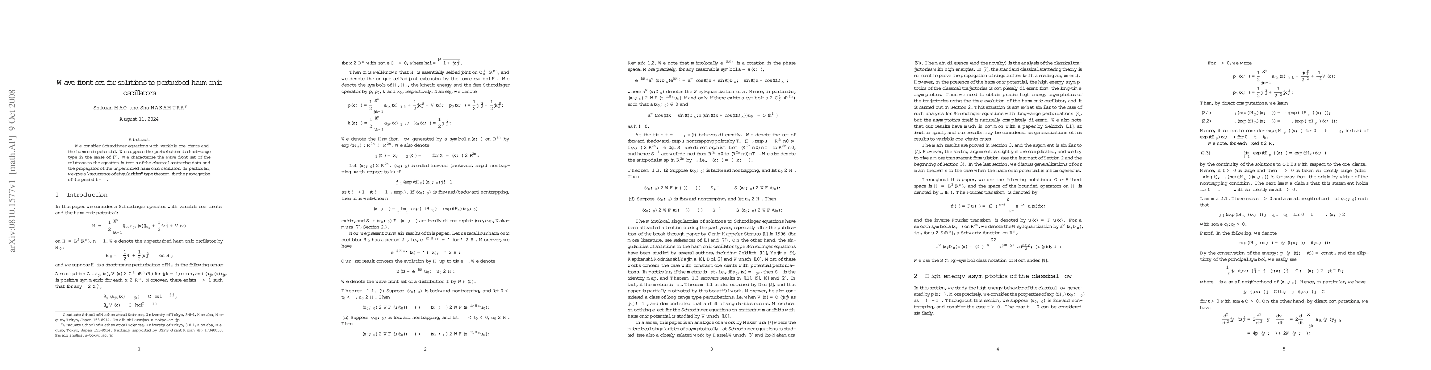 This research paper investigates the wave front set of solutions to perturbed harmonic oscillators, relating it to classical scattering data and the unperturbed oscillator's propagator, with a focus on the recurrence of singularities for propagation at $t=rac{ au}{2}$.