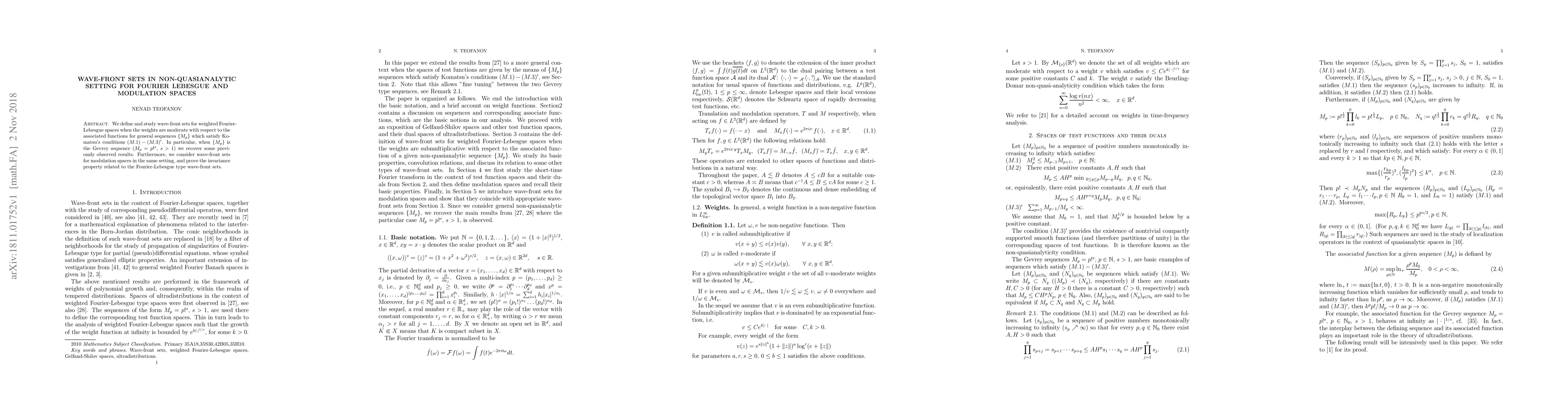 This paper defines wave-front sets for weighted Fourier-Lebesgue spaces under moderate weight conditions and Komatsu's sequence criteria. It explores these sets in modulation spaces and proves invariance properties, recovering known results for the Gevrey sequence.