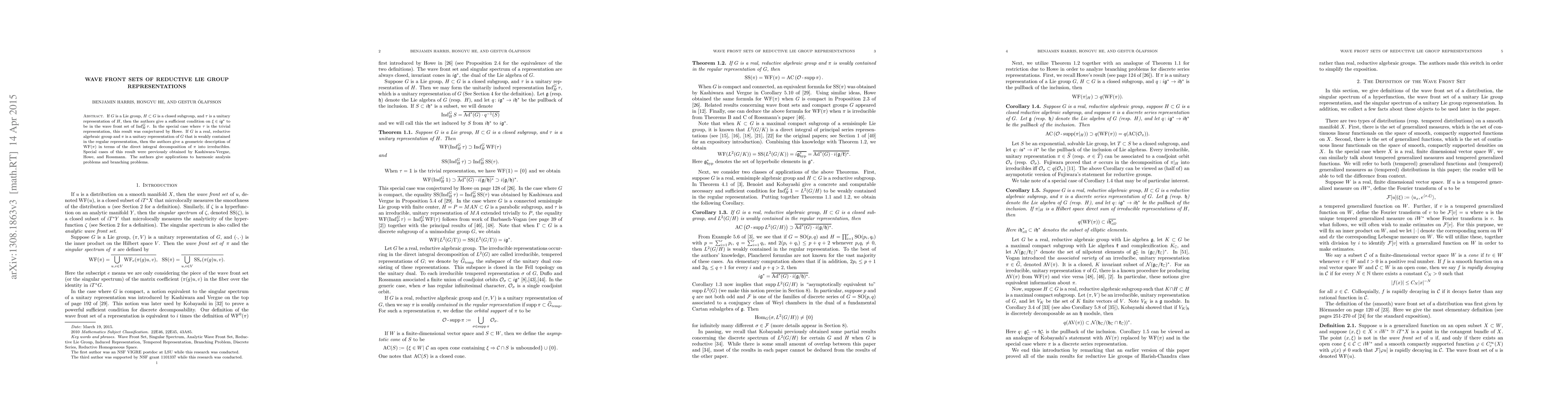 This paper provides a sufficient condition for elements in the wave front set of induced representations of reductive Lie groups, extending previous results by Howe and others. It also offers a geometric description of the wave front set for unitary representations weakly contained in the regular representation, with applications to harmonic analysis and branching problems.