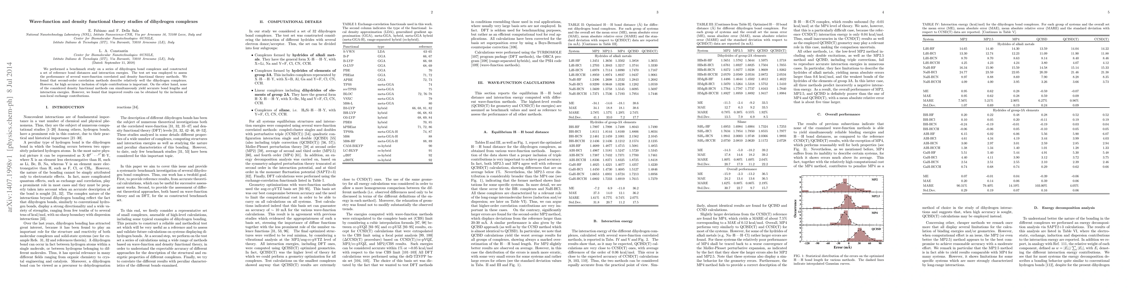 This study benchmarks various wave-function and density functional theory methods to analyze dihydrogen bond complexes, finding that second-order correlation methods provide good descriptions but triple contributions are crucial for high accuracy. The research reveals that no density functional method can accurately predict both bond lengths and interaction energies, though improved results are achievable with non-local exchange contributions.