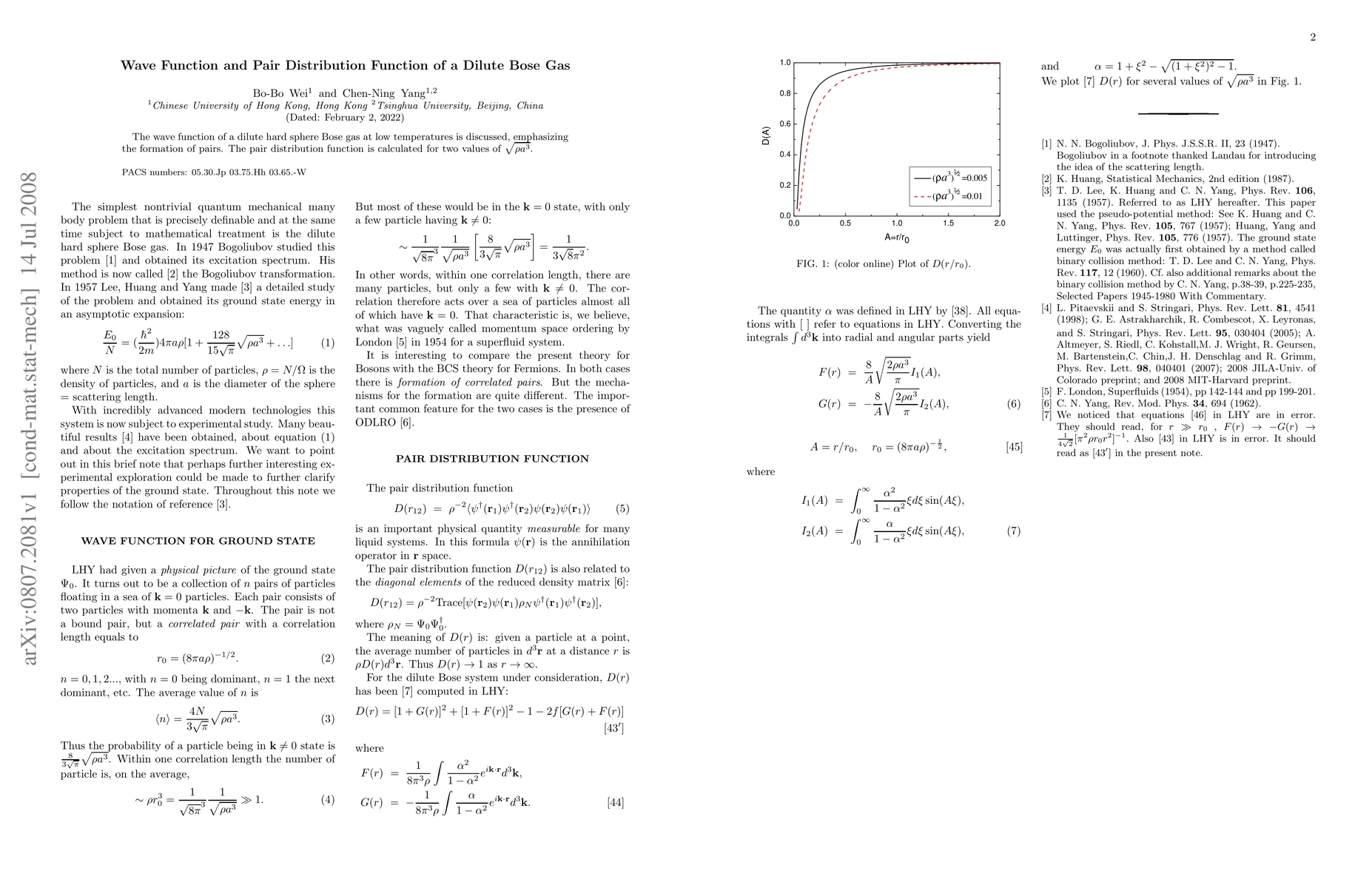 Summary: This paper explores the wave function and pair distribution function of a dilute hard sphere Bose gas at low temperatures, focusing on pair formation. The study calculates the pair distribution function for specific densities, highlighting the behavior of paired particles.