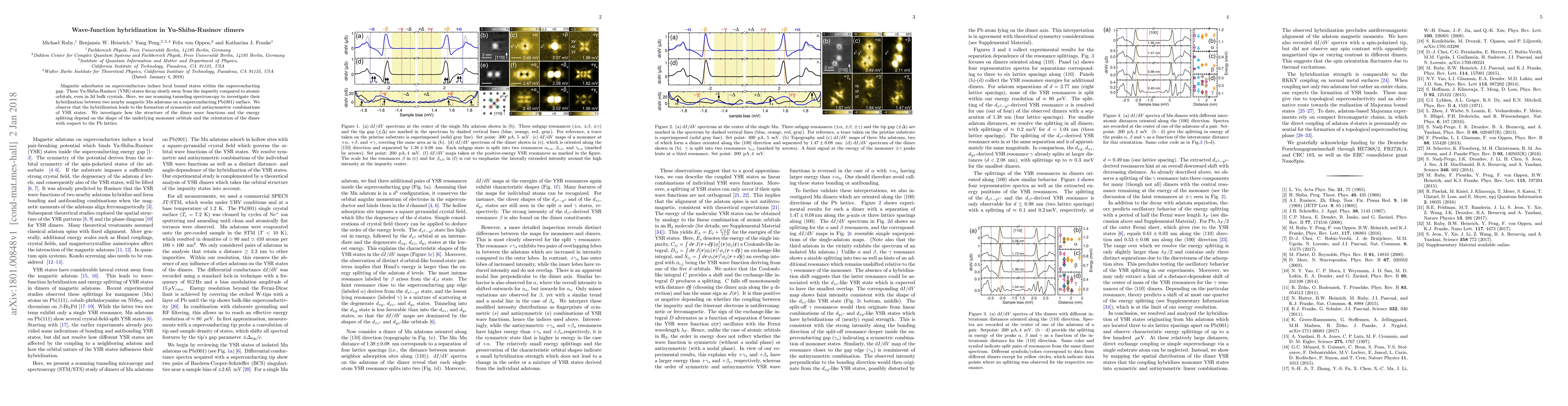 Researchers investigate how magnetic Mn adatoms on a superconducting surface hybridize, forming new energy states that depend on the adatom's shape and orientation. This study sheds light on the behavior of Yu-Shiba-Rusinov states in dimer systems.
