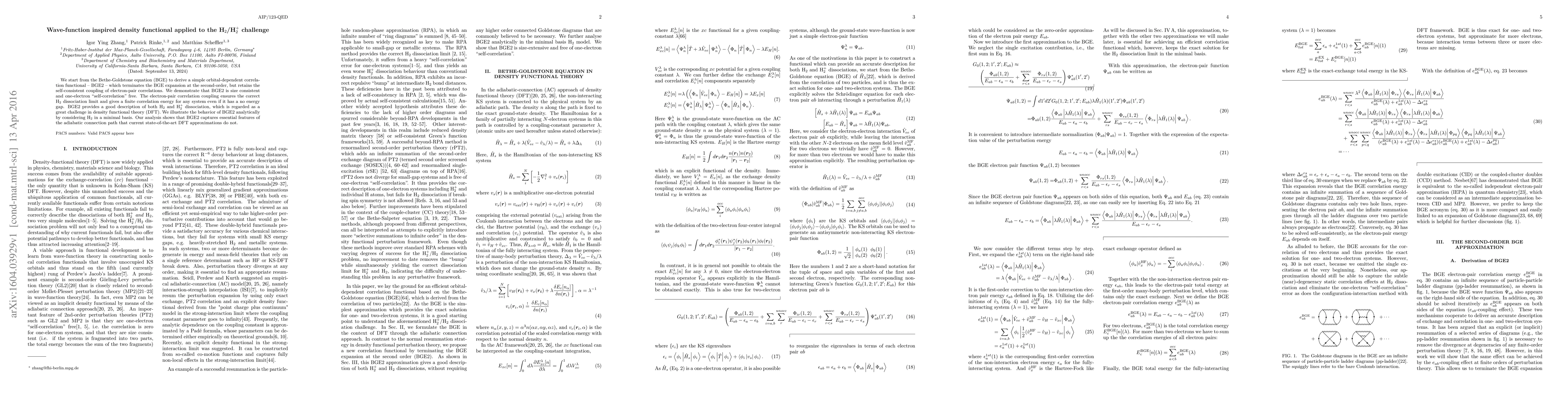 We start from the Bethe-Goldstone equation (BGE) to derive a simple orbital-dependent correlation functional -- BGE2 -- which terminates the BGE expansion at the second-order, but retains the self-consistent coupling of electron-pair orrelations. We demonstrate that BGE2 is size consistent and one-electron "self-correlation" free. The electron-pair correlation coupling ensures the correct H$_2$ dissociation limit and gives a finite correlation energy for any system even if it has a no energy gap. BGE2 provides a good description of both H$_2$ and H$_2^+$ dissociation, which is regarded as a great challenge in density functional theory (DFT). We illustrate the behavior of BGE2 analytically by considering H$_2$ in a minimal basis. Our analysis shows that BGE2 captures essential features of the adiabatic connection path that current state-of-the-art DFT approximations do not.