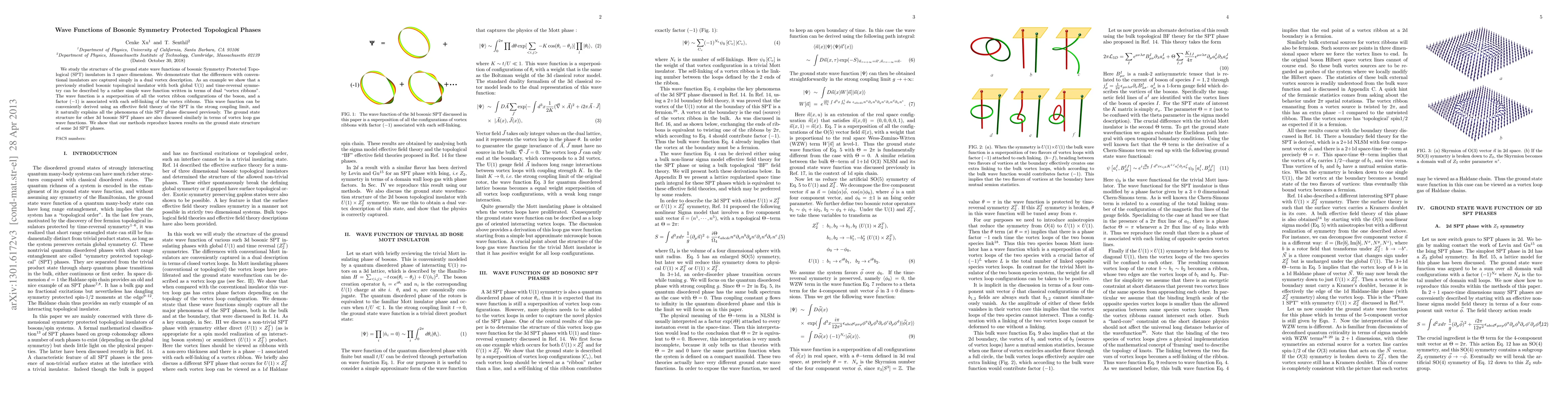 We study the structure of the ground state wave functions of bosonic Symmetry Protected Topological (SPT) insulators in 3 space dimensions. We demonstrate that the differences with conventional insulators are captured simply in a dual vortex description. As an example we show that a previously studied bosonic topological insulator with both global U(1) and time-reversal symmetry can be described by a rather simple wave function written in terms of dual "vortex ribbons". The wave function is a superposition of all the vortex ribbon configurations of the boson, and a factor (-1) is associated with each self-linking of the vortex ribbons. This wave function can be conveniently derived using an effective field theory of the SPT in the strong coupling limit, and it naturally explains all the phenomena of this SPT phase discussed previously. The ground state structure for other 3d bosonic SPT phases are also discussed similarly in terms of vortex loop gas wave functions. We show that our methods reproduce known results on the ground state structure of some 2d SPT phases.