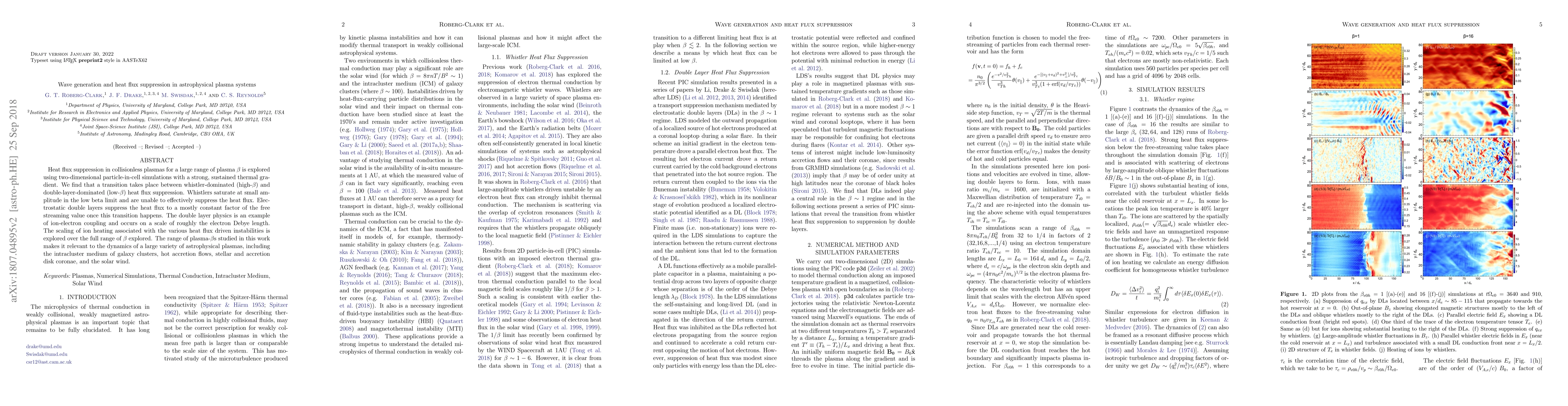 This paper investigates heat flux suppression in collisionless plasmas using simulations, revealing a transition between whistler-dominated and double-layer-dominated suppression mechanisms across varying plasma $\beta$ values. Electrostatic double layers effectively suppress heat flux at low $\beta$, while whistler waves saturate at small amplitudes and are less effective.
