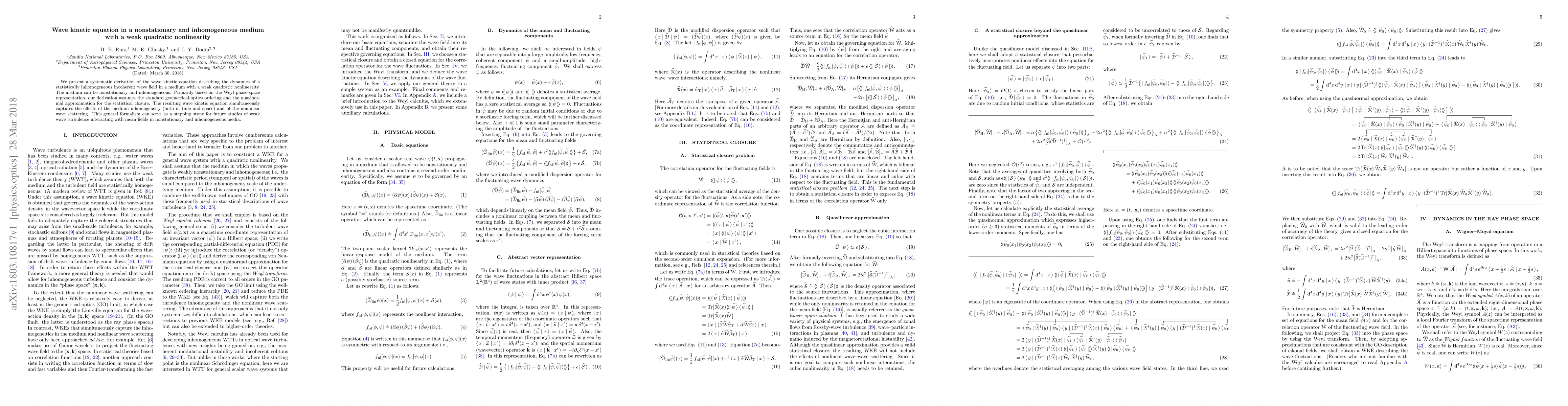 This paper derives a wave kinetic equation for the dynamics of an incoherent wave field in a nonstationary and inhomogeneous medium with weak quadratic nonlinearity, using the Weyl phase-space representation and quasinormal approximation. The formalism captures medium inhomogeneity and nonlinear wave scattering effects.